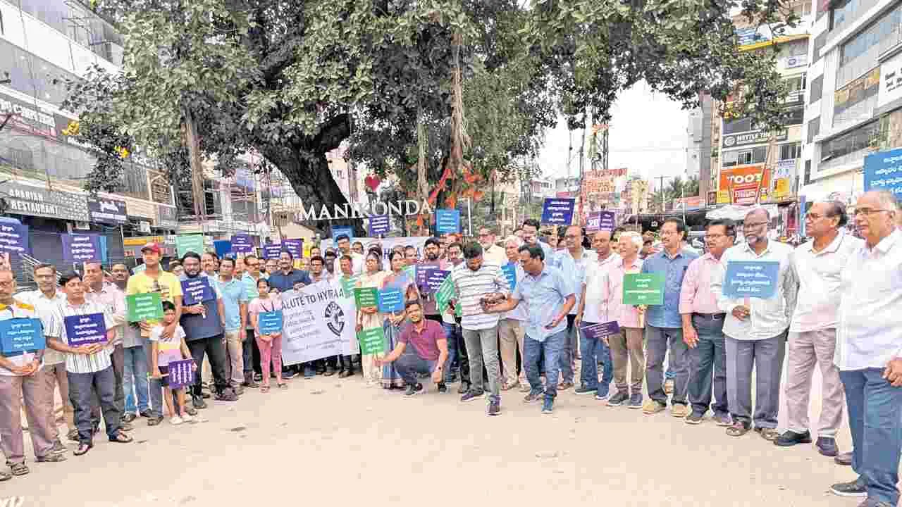 హైదరాబాద్ సిటీ, నవంబరు 5(ఆంధ్రజ్యోతి): హైడ్రాకు మద్దతుగా పలు బస్తీలు, కాలనీల ప్రజలు ప్రదర్శనలు చేపట్టారు. మణికొండ మర్రి చెట్టువద్ద 15 కాలనీల ప్రజలు ర్యాలీ నిర్వహించారు. మణికొండ మున్సిపాలిటీలో వెయ్యికోట్ల రూపాయల విలువైన పార్కులు కాపాడి నగర ప్రజలకు ప్రాణ వాయువును అందించారంటూ ప్లకార్డులు ప్రదర్శించారు. నెక్నాంపూర్ విలేజ్, తిరుమల హిల్స్ నుంచి స్థానికులు పెద్ద సంఖ్యలో ర్యాలీలో పాల్గొన్నారు. ఖాజాగూడ ప్రశాంతిహిల్స్లో హైడ్రా కాపాడిన పార్కుల్లో మొక్కలు నాటారు. కొండాపూర్లోని రాఘవేంద్రకాలనీలో ఉస్మానియా యూనివర్సిటీ ప్రొఫెసర్స్ కాలనీలో 4300 గజాల ప్రజావసరాలకు ఉద్దేశించిన స్థలాలను కాపాడార ంటూ ర్యాలీ నిర్వహించారు. రాఘవేంద్రకాలనీలో 2 వేల గజాల పార్కును కాపాడినందుకు అభినందన సభ ఏర్పాటు చేశారు. హైడ్రాపై దుష్ప్రచారం వద్దని, కూల్చివేతలన్నింటినీ హైడ్రాకు ఆపాదించి సామాజిక మాద్యమాల్లో ప్రచారం చేయడం తగదన్నారు. దశాబ్దాల సమస్యలను గంటలు, రోజుల్లో పరిష్కరించే సత్తా హైడ్రాకు ఉందంటూ ప్రశంసలు కురిపించారు.