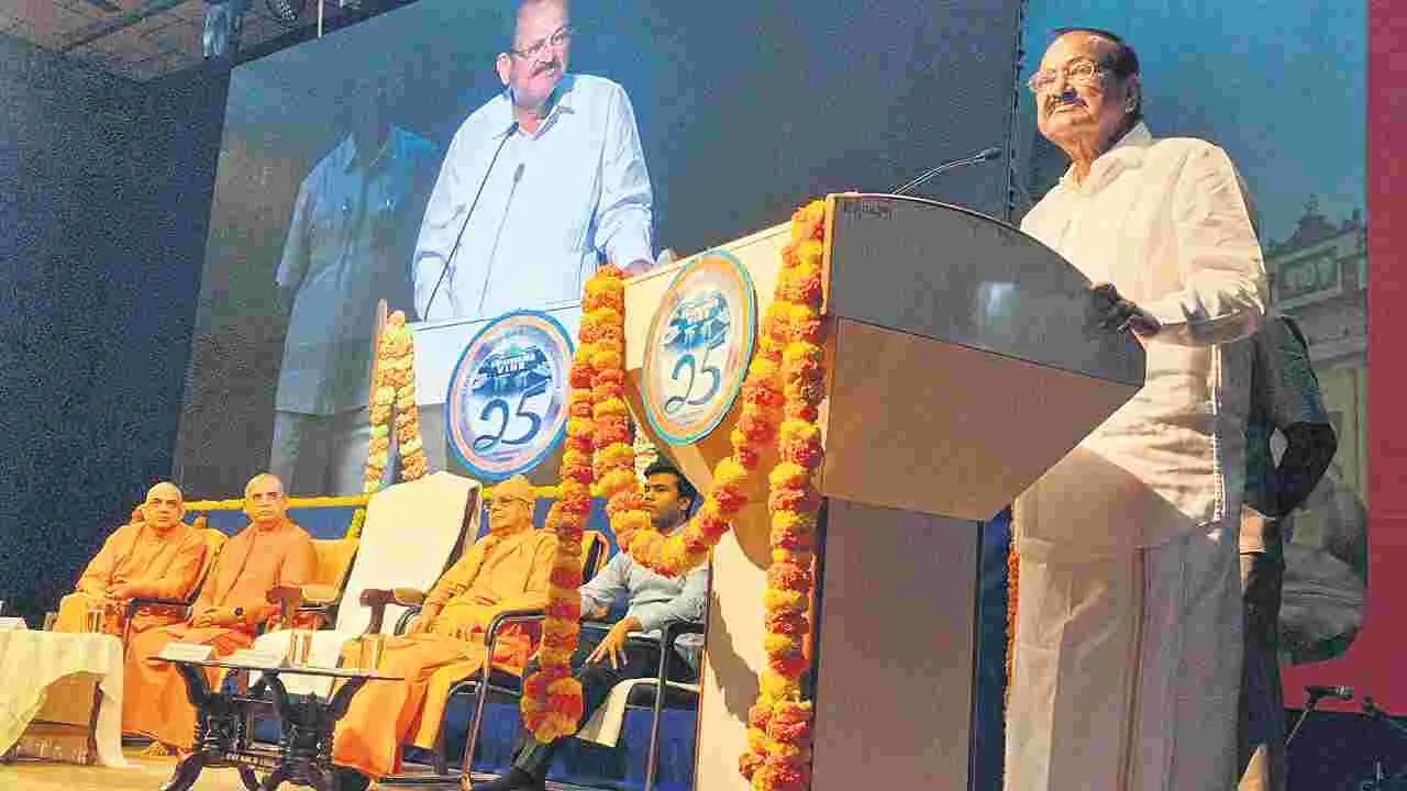 కవాడిగూడ, సెప్టెంబరు 10 (ఆంధ్రజ్యోతి) : సంస్కారం లేని విద్య పరమ దండగ అని మాజీ ఉపరాష్ట్రపతి వెంకయ్యనాయుడు అభిప్రాయపడ్డారు. తల్లిదండ్రులతోపాటు గురువులను ప్రతి ఒక్కరూ గౌరవించాలని సూచించారు. హైదరాబాద్లోని రామకృష్ణ మఠంలో ఉన్న స్వామి వివేకానంద ఇన్స్టిట్యూట్ ఆఫ్ హ్యుమన్ ఎక్స్లెన్సీ సిల్వర్ జూబ్లీ ఉత్సవాల్లో ఆయన ముఖ్య అతిథిగా మాట్లాడారు. ప్రతి ఒక్కరూ పర్యావర ణాన్ని కాపాడినప్పుడే అది మనల్ని కాపాడుతుందన్నారు. స్వామి వివేకానంద ఇనిస్టిట్యూట్ ఆఫ్ హ్యుమన్ ఎక్స్లెన్సీ ఆధ్వర్యంలో 25 ఏళ్లుగా వేలాదిమందిని సంస్కారవంతులుగా తీర్చిదిద్దడం అభినందనీయమన్నారు. స్వామి వివేకానంద ఆశయ సాధన కోసం నేటి యువత పాటుపడాలని, సన్మార్గంలో పయనించాలని సూచించారు. పాశ్చాత్య వ్యామోహాలకు లోనుకాకుండా స్వదేశీ సంస్కృతి, సంప్రదాయాలను గౌరవిస్తూ కుటుంబ వ్యవస్థను కాపాడుకోవాలని కోరారు. రామకృష్ణ మఠం అధ్యక్షుడు స్వామి బోధమయానంద స్వామి, నిత్యంకుంట నందాజీ తదితరుల పాల్గొన్నారు.