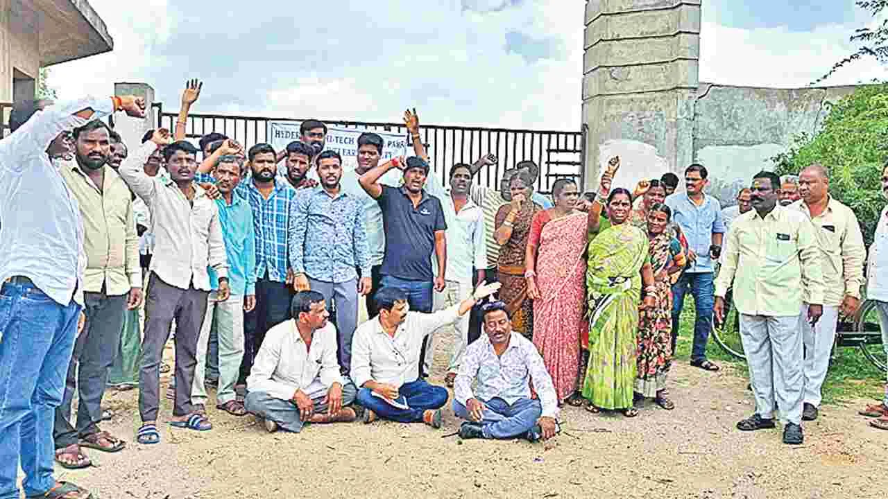 షాద్నగర్, నందిగామ జూన్ 22 (ఆంధ్రజ్యోతి): ఇంటికో ఉద్యోగం ఇస్తామని ఆశపెట్టి తమ సాగు భూములను తక్కువ ధరకు కొనుగోలుచేశారని.. ఏళ్లు గడిచినా ఇప్పటిదాకా టెక్స్టైల్స్ పార్క్ సిద్ధం చేయలేదని రైతులు కన్నెర్ర చేశారు. రంగారెడ్డి జిల్లా నందిగామ మండలం చెగూరు రెవెన్యూ శివారులోని హైదరాబాద్ హైటెక్ టెక్స్టైల్ పార్కు గేటు తాళాలు పగులగొట్టి తమ నుంచి సేకరించిన భూముల్లోకి చొచ్చుకెళ్లారు. రైతులు, సొసైటీ సభ్యులు ఆదివారం పెద్ద ఎత్తున ఽఆందోళన చేపట్టారు. తమ భూములు అప్పగించాలని, లేదంటే ఇక్కడే ఆత్మహత్య చేసుకుంటామని ఆందోళనకు దిగారు. ఈ టెక్స్టైల్ పార్కులో జరుగుతున్న అక్రమాల గురించి ‘ఆంధ్రజ్యోతి’ మార్చి 12న వెలుగులోకి తెచ్చిన విషయం విదితమే. ఉమ్మడి కొత్తూరు మండలం చెగూరు- నర్సప్పగూడ మధ్యన టెక్స్టైల్ పార్కు ఏర్పాటు కోసం హైదరాబాద్ హైటెక్ టెక్స్టైల్ పార్కు పేరిట 2000 సంవత్సరంలో సొసైటీని ఏర్పాటు చేశారు. ఇందులో 108 మంది సభ్యులను చేర్చి వారి వద్ద నుంచి డబ్బులు వసూలు చేసి రైతుల నుంచి 142 ఎకరాలను కొనుగోలు చేశారు. భూములు ఇచ్చిన రైతులకు ఇంటికో ఉద్యోగం ఇస్తామని సొసైటీ సభ్యులు హామీ ఇచ్చారు.