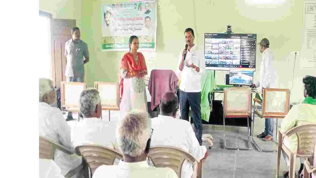 మునుగోడు రూరల్, జూన్ 16(ఆంధ్రజ్యోతి): వ్యవసాయ అధికారుల సలహాలు సూచనలు పాటించి రైతులు శాస్త్రీయంగా వ్యవసా యం చేయాలని ఎమ్మెల్సీ నెల్లికంటి సత్యం పేర్కొన్నారు. నల్లగొండ జిల్లా మునుగోడు మండలంలోని కొంపెల్లి రైతువేదికలో సోమవారం జరిగిన రైతు నేస్తం కార్యక్రమాన్ని ప్రారంభించి మాట్లాడారు. రైతులు దళారులను నమ్మకుండా వ్యవసాయ అధికారుల సూచనలు పాటించాలన్నారు. రైతులకు ప్రభుత్వం ఇచ్చిన హామీలను అమలు చేయాలని ప్రస్తుతం రైతులు పంటల సాగు చేస్తున్నందున రైతులకు వెంటనే రైతుభరోసా వారి ఖాతాలో జమ చేయాలన్నారు. వ్యవసాయ అధికారులు రైతులకు సలహాలు, సూచనలు ఇవ్వాలన్నారు. ఈ కార్యక్రమంలో ఏవో పద్మజ, కొంపెల్లి ఏఈవో యాదగిరి, వహీద్, లాలయ్య, కోటేశ్వరరావు, ఆల్ల రాజు వీరమల్ల యాదయ్య వీరమల్ల వెంకట్ రాములు, ఎడ్ల రామలింగయ్య, శ్యామల, సుజాత, లక్ష్మి, వెంకటమ్మ, సురిగి చలపతి పాల్గొన్నారు.