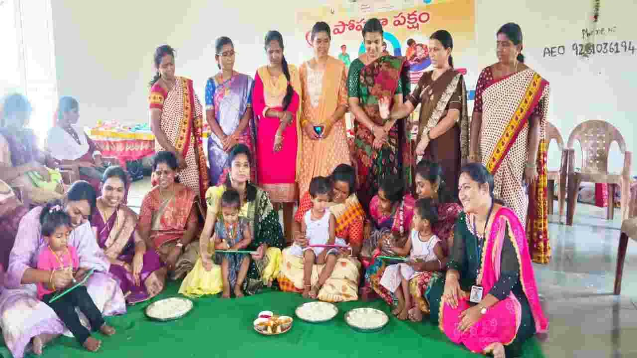 దండేపల్లి (లక్షెట్టిపేట) ఏప్రిల్ 17(ఆంధ్రజ్యోతి): పోష్టికాహారంతోనే చక్కటి ఆరోగ్యం లభిస్తుందని ఆరోగ్యకరమైన జీవనశైలిపై ప్రతి ఒక్కరికి అవగాహన కల్పించి ఆ లోపాలను అరికట్టాలని జిల్లా ఇన్చార్జి సంక్షేమ అధికారిణి రాజేశ్వరీ, లక్షెట్టిపేట ఐసీడీఎస్ సీడిపీవో రేష్మలు సూచిం చారు. పోషణ పక్వాడ్ పక్షోత్సవాల సందర్భంగా పోషక అభియాన్ను లక్షెట్టిపేట మండలం సూరారం రైతు వేదికలో గురువారం లక్షెట్టిపేట ఐసీడీఎస్ పరిధిలోని అంగన్వాడీ టిచర్లకు, గర్భిణులకు పోషకాహారం, సామూహిక సీమంతాలు, చిన్నారులకు అక్షరభ్యాసం చేయించారు. వా రు మాట్లాడుతూ మహిళలు, గర్బిణులు పోషక విలువతో కూడిన ఆకు కూరలు, చిరుధాన్యాలు, పండ్లు తీసుకోవాలన్నారు. గర్బిణులు పౌష్టికా హారం తీసుకోవడం ద్వారా రక్తహీనతను నివారించవచ్చునన్నారు. కార్యక్రమంలో ఐసీడీఎస్ సూపర్వైజర్ల వనితా వాక్కు ఫాండేషన్ కో ఫాండర్ కవిత, జిల్లా సమన్వయ అధికారిణి రజిత, సమన్వయ సహా యక అధికారిణి శ్యామల, జిల్లా మహిళ సాధికారిత అధికారిణి సౌజన్య పాల్గొన్నారు.