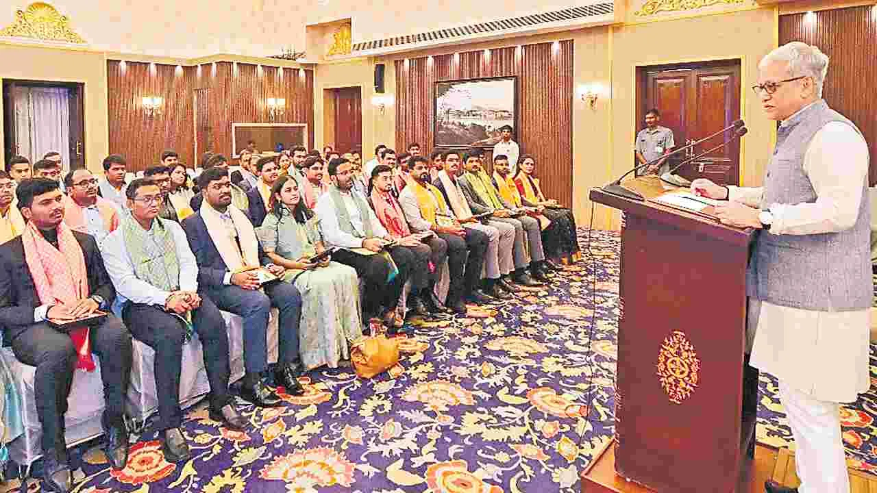 ఎంసీఆర్హెచ్డీ వైస్ చైర్మన్ శాంతికుమారి, కోర్సు డైరక్టర్ ఉషారాణి శిక్షణలో ఉన్న ఐఏఎస్ అధికారులతో కలిసి రాజ్భవన్కు వచ్చారు. పాలనలో రాజ్భవన్ పాత్ర, గవర్నర్ బాధ్యతలను గవర్నర్ ప్రిన్సిపల్ సెక్రటరీ దానకిశోర్ వారికి వివరించారు. కాగా, సివిల్ సర్వీసె్సలో ఈ విజయం మీ క్రమశిక్షణ, సంకల్పం, పట్టుదలకు ఫలితమని సివిల్ సర్వీసెస్, ఇండియన్ ఫారెస్టు సర్వీసుకు ఎంపికైన అభ్యర్థులతో గవర్నర్ జిష్ణుదేవ్ వర్మ అన్నారు. తెలుగు రాష్ట్రాల నుంచి సివిల్ సర్వీసె్సలో విజేతలైన అభ్యర్థులను బుధవారం రాజ్భవన్లో జరిగిన ఒక కార్యక్రమంలో గవర్నర్ సన్మానించారు.