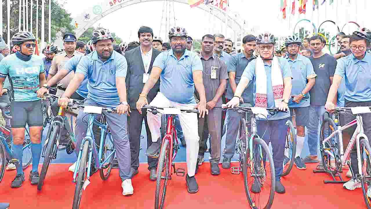 జాతీయ క్రీడా దినోత్సవాల్లో భాగంగా చివరిరోజు ఆదివారం గచ్చిబౌలి స్టేడియం వద్ద జరిగిన ఫిట్ ఇండియా - సండేస్ ఆన్ సైకిల్ కార్యక్రమానికి గవర్నర్ జిష్ణుదేవ్ వర్మ ముఖ్యఅతిథిగా హాజరై జెండా ఊపి సైక్లింగ్ ర్యాలీ ప్రారంభించారు.