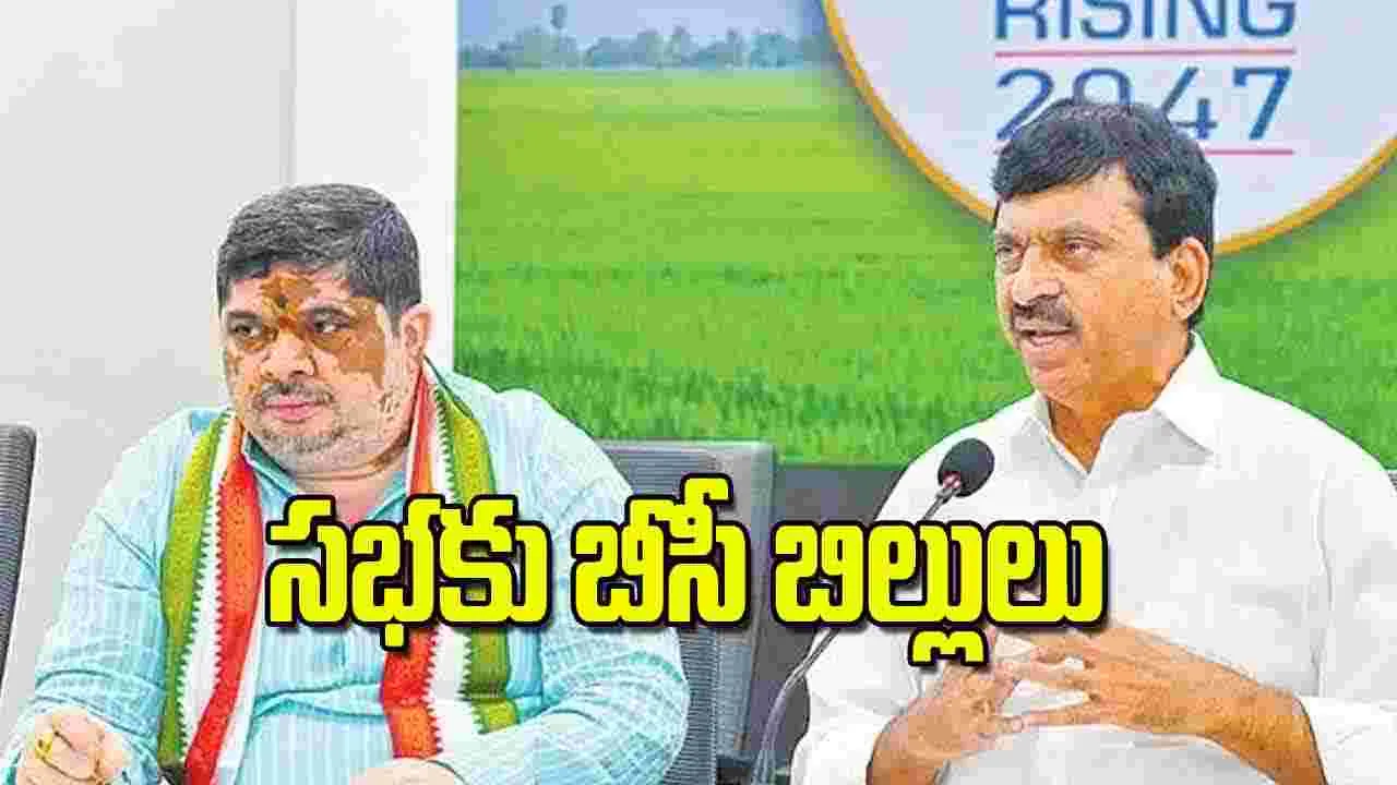 హైదరాబాద్, ఆగస్టు 30 (ఆంధ్రజ్యోతి): స్థానిక సంస్థల ఎన్నికల్లో బీసీలకు 42 శాతం రిజర్వేషన్లను ప్రభుత్వ పరంగానే ఇచ్చేందుకు ప్రభుత్వం సన్నద్ధమవుతోంది. శాసనసభ ఆమోదించిన రెండు బీసీ రిజర్వేషన్ల బిల్లులు రాష్ట్రపతి వద్ద పెండింగ్లో ఉండడం, గవర్నర్కు పంపిన రెండు ఆర్డినెన్స్లు కూడా రాష్ట్రపతి వద్దకే వెళ్లిన నేపథ్యంలో ఇప్పుడా ఆర్డినెన్స్ల స్థానంలో రెండు బిల్లులను తిరిగి ఆదివారం శాసనసభలో ప్రవేశపెట్టి వెంటనే ఆమోదించాలని రాష్ట్ర మంత్రివర్గం నిర్ణయించింది. సెప్టెంబరు 30 లోపు స్థానిక సంస్థల ఎన్నికలను పూర్తి చేయాలంటూ హైకోర్టు విధించిన గడువు దగ్గర పడుతుండడం, పాలక వర్గాలు లేక స్థానిక సంస్థలకు కేంద్రం నుంచి రావాల్సిన ఆర్థిక సంఘం నిధులు నిలిచిపోవడం వంటి పరిస్థితుల నేపథ్యంలో ఈ నిర్ణయం తీసుకుంది. మొత్తం రిజర్వేషన్లు 50 శాతానికి మించకూడదన్న క్యాప్ను తొలగిస్తూ పంచాయతీరాజ్ చట్టం-2018, పురపాలక చట్టం-2019 సవరణల బిల్లులను ఆదివారం శాసనసభలో ప్రవేశపెట్టి ఆమోదం పొందుతారు. దాంతోపాటు బీసీలకు 42 రిజర్వేషన్లను వర్తింపజేస్తూ ప్రత్యేక జీఓను జారీ చేస్తారు. గవర్నర్ కోటాలో ప్రొఫెసర్ కోదండరామ్, మహమ్మద్ అజారుద్దీన్లను ఎమ్మెల్సీలుగా ప్రతిపాదిస్తూ రాష్ట్ర మంత్రివర్గం మరో కీలక నిర్ణయం తీసుకుంది. ముఖ్యమంత్రి రేవంత్రెడ్డి అధ్యక్షతన శాసనసభ కమిటీ హాలులో శనివారం మధ్యాహ్నం గంటకు పైగా జరిగిన సమావేశంలో ప్రధానంగా బీసీ రిజర్వేషన్లు, వరద నష్టం, ఎమ్మెల్సీ అభ్యర్థుల ఎంపికపై చర్చించారు. అనంతరం సచివాలయంలో మంత్రులు పొంగులేటి శ్రీనివాసరెడ్డి, పొన్నం ప్రభాకర్ సమావేశం వివరాలను విలేకరులకు వెల్లడించారు. శ్రీనివాసరెడ్డి మాట్లాడుతూ, స్థానిక సంస్థలు, విద్యా ఉద్యోగాల్లో బీసీలకు 42 శాతం రిజర్వేషన్లు కల్పించే రెండు ఆర్డినెన్స్లను రూపొందించి గవర్నర్ ఆమోదం కోసం ఇదివరకే పంపించామని తెలిపారు. అవి ఆమోదం పొందక పోవడంతో వాటి స్థానంలో రెండు చట్టాల సవరణ బిల్లులను శాసనసభలో ప్రవేశపెట్టాలని క్యాబినెట్ నిర్ణయించిందన్నారు. రిజర్వేషన్లు 50 శాతానికి మించకూడదన్న పంచాయతీరాజ్ చట్టం-2018, పురపాలక చట్టం-2019లోని నిబంధనలను తొలగించడం ఈ సవరణ చట్టాల లక్ష్యమని తెలిపారు. దానికితోడు గ్రామీణ, పట్టణ స్థానిక సంస్థల్లో బీసీలకు 42ు రిజర్వేషన్ల కల్పనకు ప్రత్యేక జీఓను జారీ చేయాలని క్యాబినెట్ నిర్ణయించిందని చెప్పారు.