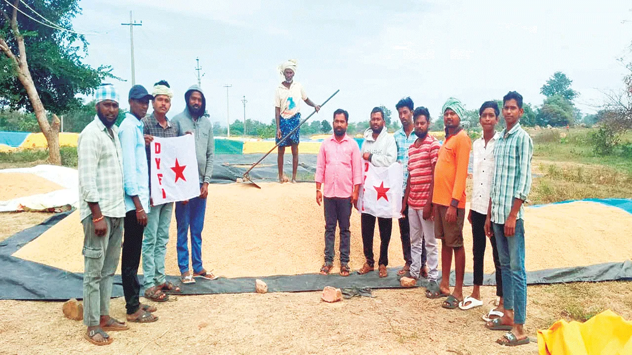 కోడేరు, నవంబరు 30 (ఆంధ్రజ్యోతి) : ధాన్యం కొనుగో లు కేంద్రాలను వెంటనే ప్రారం భించాలని డీవైఎఫ్ఐ జిల్లా అధ్య క్షుడు పి.శివశంకర్ ప్రభుత్వాన్ని డిమాండ్ చేశారు. ఆదివారం మండల పరిధిలోని జనుంపల్లి గ్రామంలో కొనుగోలు కేంద్రాన్ని ఆయన సందర్శించి రైతులతో మా ట్లాడారు. ఈ సందర్భంగా ఆయన మాట్లాడు తూ రైతులు 15, 20 రోజుల నుంచి కొనుగోలు కేంద్రాలకు వడ్లు తరలించి విక్రయం కోసం వేచి చేస్తున్నారని, ప్రభుత్వం వడ్ల కొనుగోలు కేంద్రం ఐకేపీ ఆధ్వర్యంలో నిర్వహిస్తున్నప్పటికీ కొనుగోలు మాత్రం చేయడం లేదని ఆయన పేర్కొన్నారు. ప్రభుత్వ ఆదేశాలు ఉన్నప్పటికీ స్థానిక కొనుగోలు అధికారులు కొనుగోలు ప్రా రంభించి ఆ తరువాత కొనుగోలు చేయకపోవ డంతో రైతులు పడికాపులు కాయాల్సి వస్తుం దన్నారు. కార్యక్రమంలో రైతులు మధు, శేఖర్, తిరుమలరాజు, మధుకర్, తరుణ్ పాల్గొన్నారు.