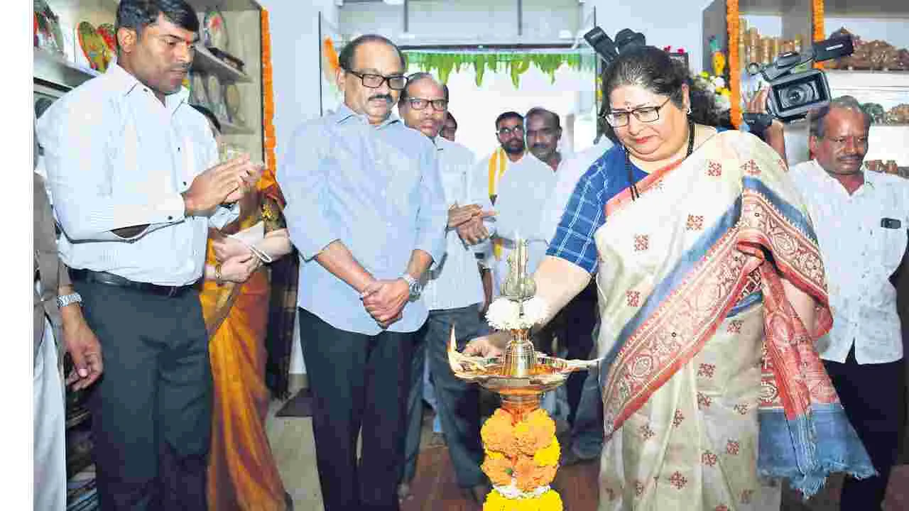 యాదగిరిగుట్ట, ఏప్రిల్ 9(ఆంధ్రజ్యోతి): యాదగిరిగుట్ట లక్ష్మీనృసింహుడిని దర్శిం చుకునేందుకు క్షేత్రానికి వచ్చే భక్తులు హస్త కళలకు సంబంధించిన వస్తువులను కొనుగోలు చేసి తగిన ప్రోత్సాహం అందించాలని దేవాదాయ శాఖ ప్రిన్సిపల్ సెక్ర టరీ, పరిశ్రమలు, వాణిజ్య శాఖ మేనేజింగ్ డైరెక్టర్ శైలజారామయ్యర్ పిలుపునిచ్చా రు. తెలంగాణ హస్త కళల అభివృద్ధి సంస్థ ఆధ్వర్యంలో బుధవారం గోల్కొండ హస్త కళల విక్రయశాలను జ్యోతి ప్రజ్వలన చేసి, తెలంగాణ హస్త కళల అభివృద్ధి సంస్థ చైర్మన్ నాయుడు సత్యనారాయణ, ఆలయ ఈవో ఏ.భాస్కర్రావుతో కలిసి బుధ వారం ప్రారంభించారు. ఈ సందర్భంగా ఆమె మాట్లాడుతూ హస్త కళలకు సంబంధించిన వస్తువులు కొండపైన గోల్కొండ హస్తకళల విక్రయశాలలో లభిస్తాయన్నారు. హస్తకళలను ప్రోత్సహించేందుకు ఇక్కడ విక్రయశాలను ఏర్పాటుచేసినట్లు తెలిపారు. కార్యక్రమంలో హస్తకళల అభివృద్ధి సంస్థ ఓఎస్డీ బాషా, మసూద్ అలీ, వేణుగోపాల్, గాయత్రి, సుల్తానా, శ్రీపాణి, మహేందర్రావు, సిబ్బంది పాల్గొన్నారు.