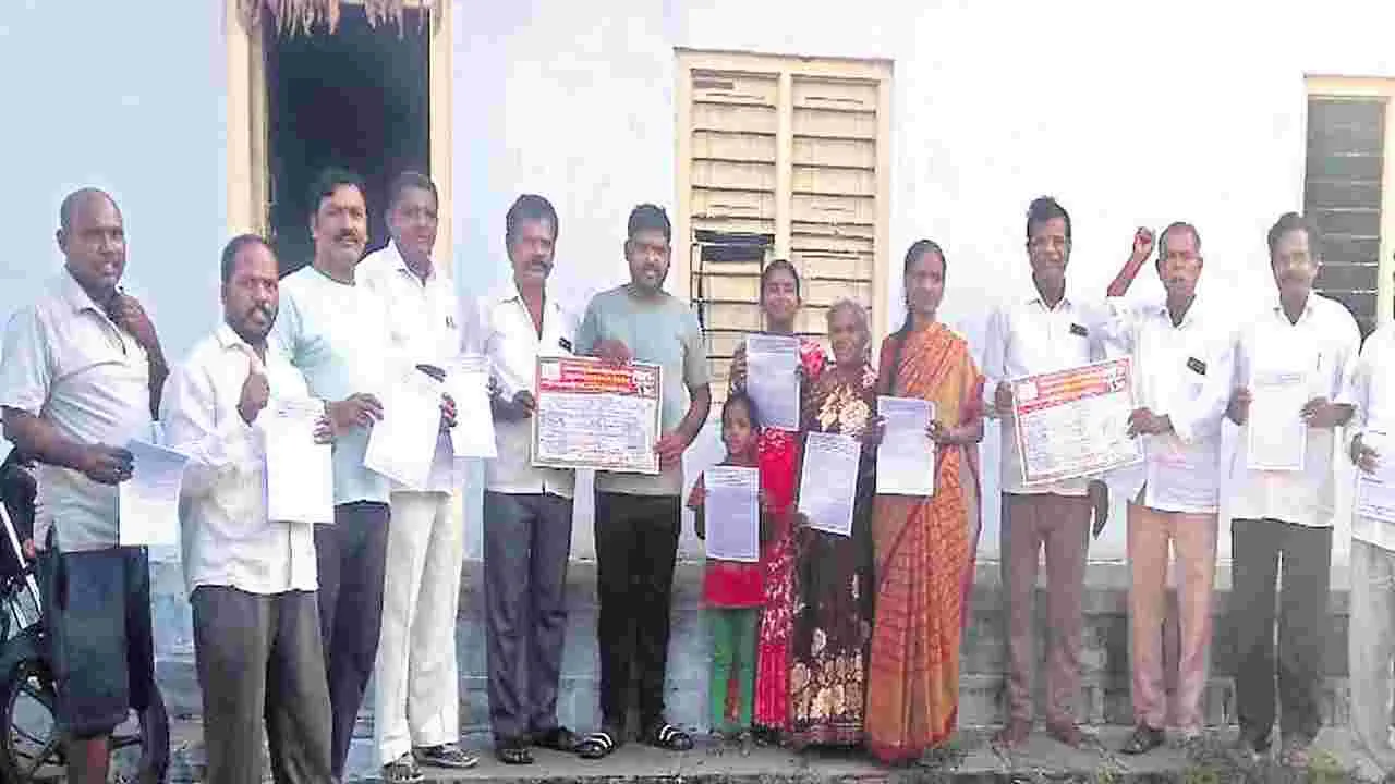 వలిగొండ, నవంబరు 9 (ఆంధ్రజ్యోతి): చేనేత రంగాన్ని కేంద్ర, రాష్ట్ర ప్రభుత్వాలు నిర్లక్ష్యం చేస్తున్నాయని, దీనికి నిరసనగా ఈ నెల 20న హైదరాబాద్లోని చేనేత కమిషనర్ కార్యాలయం ఎదుట నిర్వహించే ధర్నాను విజయవంతం చేయాలని చేనేత కార్మిక సంఘం జిల్లా అధ్యక్షుడు గుర్రం నర్సింహ, ప్రధాన కార్యదర్శి గుండు వెంకట్నర్సు పిలుపునిచ్చారు. ఆదివారం మండలకేంద్రంలో కరపత్రాలు ఆవిష్కరిం చారు. నూలు, రంగులు, ముడిసరుకులపైనే కాకుండా నేసిన దుస్తుల కూడా జీఎస్టీ పేరుతో పన్నులు వేసి పదేళ్లలో కేంద్ర ప్రభుత్వం చేనేత రంగాన్ని పూర్తిగా నిర్వీర్యం చేసిందని విమర్శించారు. కార్యక్రమంలో గర్దాసు నర్సింహ, వనం ఉపేందర్, దొంత శంకరయ్య, అయిటిపాముల కుమార్, బోడ ఈశ్వర్, గుంటి రమేష్, శేఖర్ ఉన్నారు.