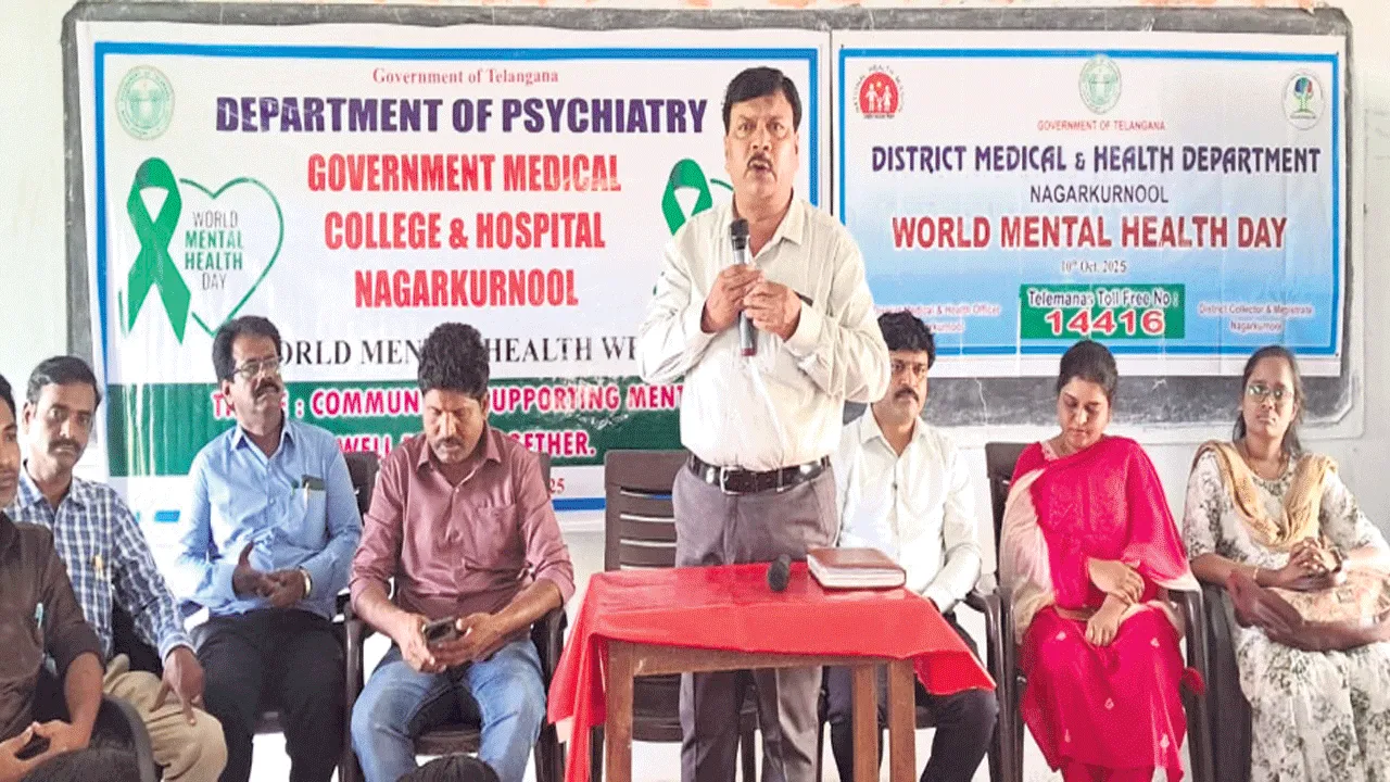 బిజినేపల్లి, ఆక్టోబరు 9 (ఆంధ్రజ్యోతి) : చిన్న ప్పటి నుంచే ప్రతీ ఒక్కరు శారీరక ఆరోగ్యంతో పాటు మానసిక ఆరోగ్యం కాపాడుకోవడం ముఖ్యమని జిల్లా వైద్య, ఆరోగ్యశాఖ అధికారి డాక్టర్ కె. రవికుమార్ అన్నారు. మండలంలోని పాలెంలోని ఎస్వీ ప్రభుత్వ జూనియర్ కళాశాల లో గురువారం ప్రపంచ మానసిక వారోత్సవం పురస్కరించుకొని నేషనల్ టోబాకో ఫ్రీ యూత్ క్యాంపెయిన్ కార్యక్రమంలో ఆయన పాల్గొని మాట్లాడారు. విద్యార్థులు పోగాకు ఉత్పత్తులను వినియోగించడం వల్ల శారీరక, మానసిక ఆరో గ్యంపై వాటి దుష్ప్రభావాల వల్ల విలువైన జీవితాలను నాశనం చేసుకోవద్దని సూచించారు. మానసిక ఒత్తిడిని అధిగమించేందుకు నిత్యం యోగా, ధ్యానం చేయడం దినచర్యలో భాగం చేసుకోవాలన్నారు. ప్రభుత్వ ఆసుపత్రి సైక్రియా టిస్ట్ డాక్టర్ అంబుజ, పాలెం పీహెచ్సీ డాక్టర్ ప్రియాంక, కళాశాల ప్రిన్సి పాల్ స్వామి, రాజగోపాలా చారి, ఏపీవో విజయ్కుమా ర్, బాదం రాజేష్, మల్లేష్, హెల్త్ అసిస్టెంట్ గోవర్ధన్, ఏఎన్ఎం గజవర్ధనమ్మ, ఆశా కార్యకర్తలు ఉన్నారు.