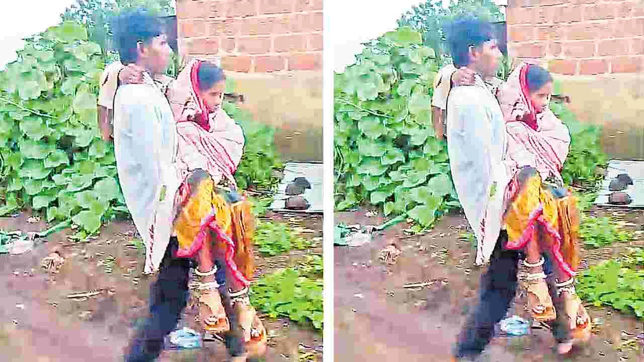 Husband Carries Laboring Wife: పురిటినొప్పులతో బాధపడుతున్న భార్యను రెండు కిలోమీటర్లు మోసుకెళ్లిన భర్త