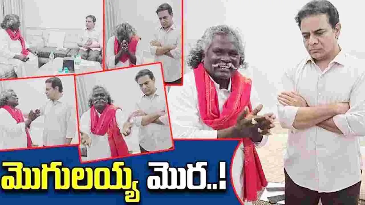 తాను కట్టుకున్న గోడలను, ఇంటిని కూడా కూలగొట్టారని, కోర్టు కేసులు వేసి వేధిస్తున్నారని ఆవేదన వ్యక్తం చేశారు. తనకు గత ప్రభుత్వం ఇచ్చిన స్థలాన్ని కాపాడాలని కేటీఆర్ను కోరారు. అనేకసార్లు కలెక్టర్ల దృష్టికి తీసుకెళ్లినప్పటికీ తనకు పరిష్కారం దొరకలేదని, తనకు అండగా నిలవాలని మొగులయ్య కోరారు. దీనిపై స్పందించిన కేటీఆర్.. రంగారెడ్డి జిల్లా కలెక్టర్ నారాయణరెడ్డికి ఫోన్ చేసి మాట్లాడారు. సమస్యను వెంటనే పరిష్కరించి, మొగులయ్యకు న్యాయం చేయాలని కలెక్టర్ను మాజీ మంత్రి కేటీఆర్ కోరారు.