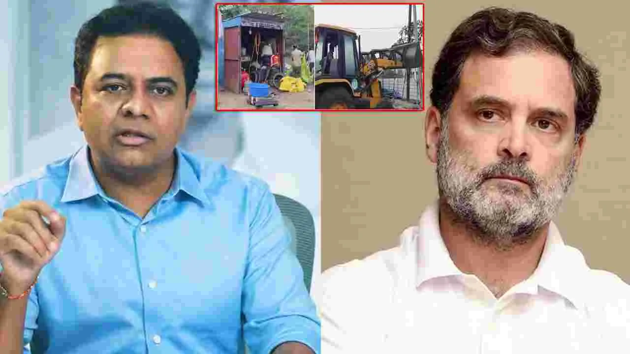 KTR Slams Rahul: వరంగల్లో ఇళ్ల కూల్చివేతపై మాజీ మంత్రి కేటీఆర్ ఫైర్ అయ్యారు. అందాల పోటీల కోసం పేదల ఇళ్లను ధ్వంసం చేయడమే ప్రజాపాలననా అంటూ ఆగ్రహం వ్యక్తం చేశారు.