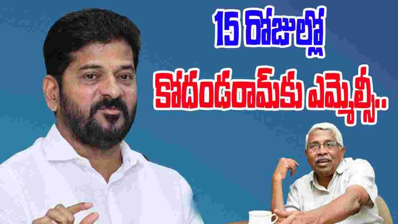 ప్రొఫెసర్ కోదండరామ్ను మళ్లీ ఎమ్మెల్సీ పదవికి ఎంపిక చేసి శాసన మండలికి పంపిస్తామని సీఎం రేవంత్ రెడ్డి ప్రకటించారు. అది కూడా కేవలం 15 రోజుల్లోనే ఈ పదవిని ఆయన కేటాయిస్తామన్నారు.
