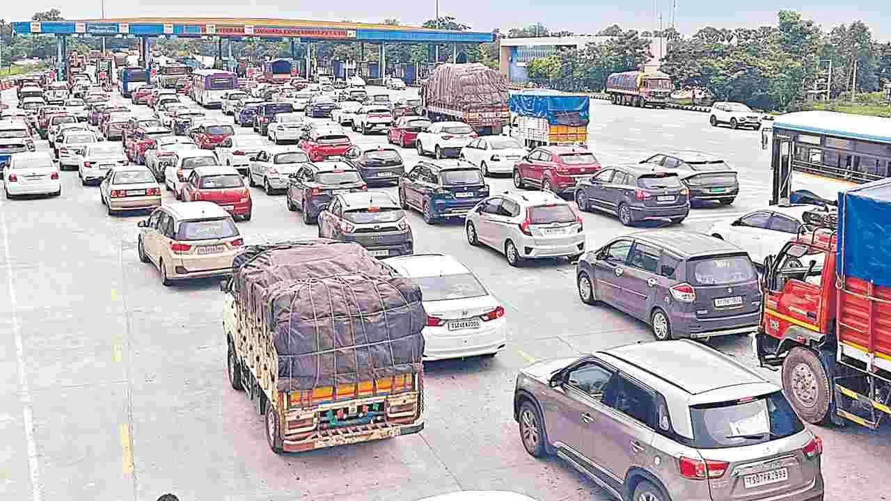 కొర్లపహాడ్, పంతంగి, గూడూరు టోల్గేట్ల వద్ద వాహనాల బారులు