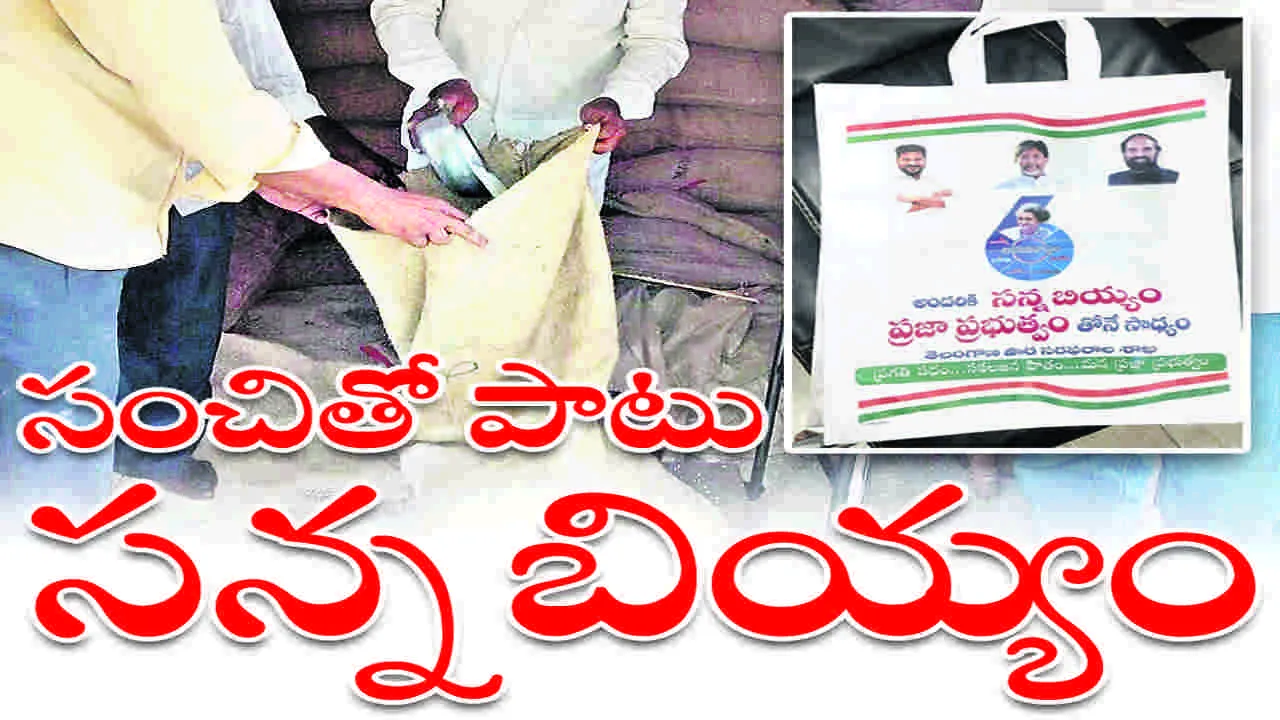 రాష్ట్రంలో ఇస్తున్న సన్నబియ్యం గురించి, ప్రభుత్వం హామీ ఇచ్చిన అభయ హస్తం పేరిట ఆరు గ్యారంటీ పథకాలపై విస్తృత ప్రచారం కల్పించేందుకు రేషన్ కార్డులు కలిగిన వినియోగదారులకు సంచులను పం పిణీ చేయాలని నిర్ణయించారు. ఈ సంచులను 15 కిలోల వరకు సరుకులు పట్టే విధంగా తయారు చేశారు. ఈ సంచులపై సీఎం రేవంత్రెడ్డి, ఉప ముఖ్య మంత్రి మల్లు భట్టి విక్రమార్క, రాష్ట్ర పౌరసరఫరాలు, నీటి పారుదల శాఖ మంత్రి ఉత్తమ్ కుమార్ రెడ్డి ఫొటోలు, ఇందిరాగాంధీ ఫొటోతో గల అభయహస్తం పేరిట ఆరు గ్యారంటీ పథకాలు మహాలక్ష్మి, గృహలక్ష్మి, యువ వికాసం, ఇందిరమ్మ ఇండ్లు, చేయూత, రైతు భరోసా పేరిట గల లోగోను ముద్రించారు. అలాగే ‘అందరికి సన్న బియ్యం ప్రజా ప్రభుత్వంతోనే సాధ్యం’ అనే నినాదం ప్రగతి పథం... సకలజన హితం... మన ప్రజా ప్రభుత్వం అనే ట్యాగ్ లైన్తో సంచులను ముద్రించారు. రేషన్ షాపులకు వచ్చి పీఓఓస్ మిషన్లపై వేలి ముద్రలు వేసిన తర్వాత బియ్యంతోపాటు సంచులను కూడా అందజేయనున్నారు. ఈ సంచుల్లో ఇద్దరు కుటుంబ సభ్యులు ఉన్న వాళ్లు మాత్రమే బియ్యం తీసుక పోవచ్చు. అనంతరం మార్కెట్కు సంచులను తీసుకువెళితే రేషన్ షాపుల ద్వారా సన్న బియ్యం ఇస్తున్నదనే ప్రచారం అవుతుందనే ఉద్ధేశ్యం తోనే సంచులను పంపిణీ చేసేందుకు ఏర్పాట్లు చేస్తు న్నది. సంచులు ఎంఎల్ఎస్ పాయింట్లకు చేరుకుంటున్నాయి.