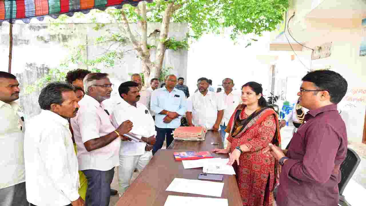 సైదాపూర్, మే 16(ఆంధ్రజ్యోతి): భూభారతి ఆర్ఓఆర్ చట్టం అమలులో భాగంగా పైలెట్ మండలం సైదాపూర్లోని వివిధ గ్రామాలలో నిర్వహిస్తున్న రెవెన్యూ సదస్సులో స్వీకరించిన దరఖాస్తులను వెంటనే పరిష్కరించాలని జిల్లా కలెక్టర్ పమేలా సత్పతి అధికారులను ఆదేశించారు. శుక్రవారం సైదాపూర్ మండల కేంద్రంలోని గ్రామ పంచాయతీలో, వెన్నంపల్లి జిల్లా పరిషత్ ఉన్నత పాఠశాలలో నిర్వహిచిన రెవెన్యూ సదస్సులను సందర్శించారు. రైతుల నుంచి స్వీరించిన దరఖాస్తులను పరిశీలించారు. రైతులతో ముఖాముఖి మాట్లాడి వారి సమస్యలు అడిగి తెలుసుకున్నారు. పరిష్కారానికి పలు సూచనలు చేశారు. ఈ సందర్భంగా జిల్లా కలెక్టర్ మాట్లాడుతూ సైదాపూర్ మండలాన్ని భూభారతి పైలెట్ ప్రాజెక్టుగా ఎంపిక చేసిన నేపధ్యంలో, భూసమస్యలున్నవారు రెవెన్యూ సదస్సులో పాల్గొని దరఖాస్తులు సమర్పించాలని సూచించారు. దరఖాస్తులు స్వీకరించి నూతన చట్టం ప్రకారం భూసమస్యల పరిష్కా రానికి చర్యలు తీసుకుంటామన్నారు. గతంలో ప్రజలు భూ సమస్యలపై తహసీల్దార్, ఆర్డీవో వద్దకు వెళ్లేవారని, ఇప్పుడు అధికారులే స్వయంగా గ్రామాలకు వచ్చి ప్రజల వద్ద నుంచి దరఖాస్తులు స్వీకరిస్తున్నారన్నారు. ఈ అవకాశాన్ని ప్రజలు సద్వినియోగం చేసుకోవాలన్నారు. దరఖాస్తులను క్షుణ్ణంగా పరిశీలించి క్షేత్రస్థాయిలో సమగ్ర విచారణ జరిపి సమస్యలు పరిష్కరించాలని కలెక్టర్ రెవెన్యూ బృందాలను ఆదేశించారు. ప్రభుత్వ మార్గదర్శకాలు, భూభారతి నిబంధ నలపై అధికారులు పరిపూర్ణమైన అవగాహన కలిగి ఉన్నప్పుడే తప్పిదాలకు తావులేకుండా సమస్యలు పరిష్కారమవు తాయని తెలిపారు. రెవెన్యూ సిబ్బంది అంకితభావంతో విధులు నిర్వర్తించాలని పేర్కొన్నారు. కార్యక్రమంలో తహసీ ల్దార్లు గుర్రం శ్రీనివాస్, కనకయ్య, రెవెన్యూ సిబ్బంది పాల్గొన్నారు.