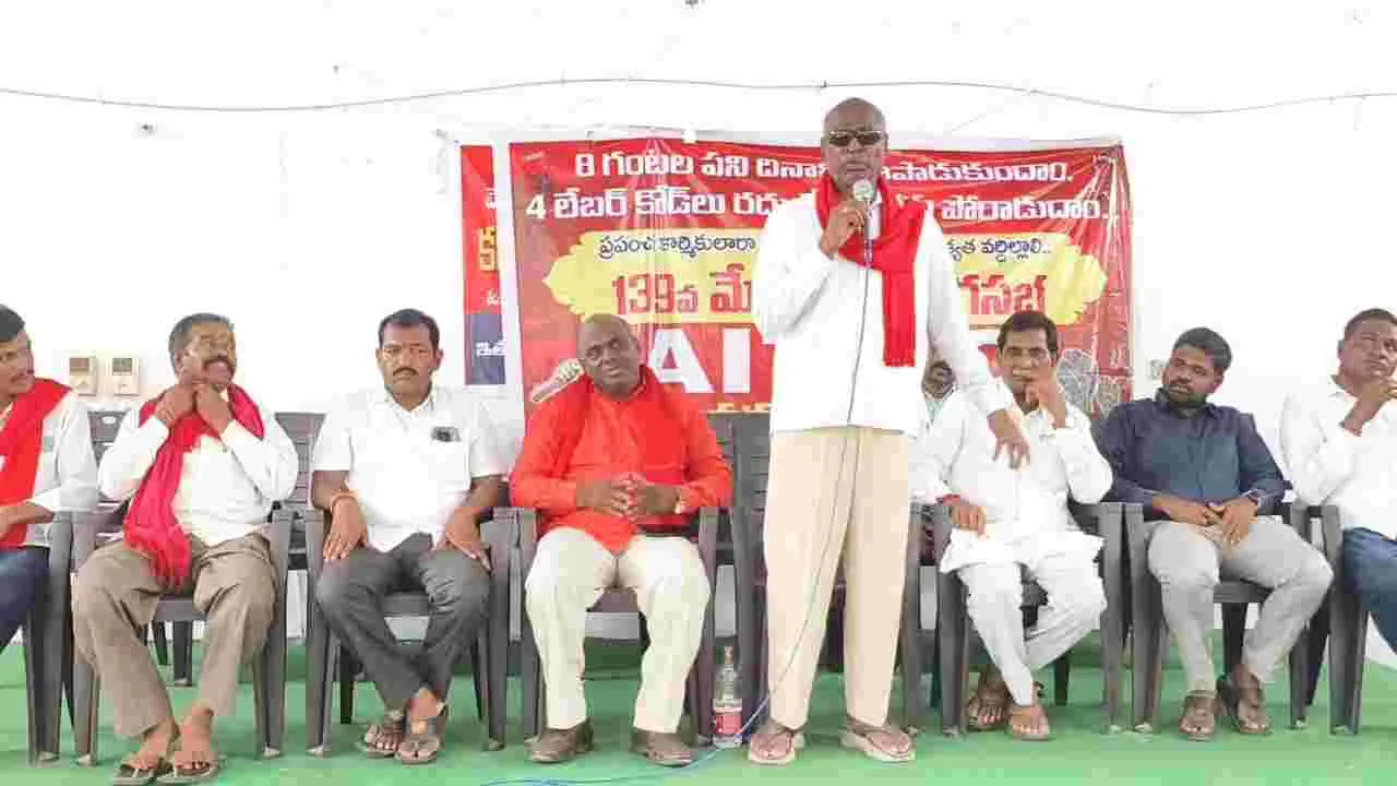 భగత్నగర్, మే 1 (ఆంధ్రజ్యోతి): కార్మికుల హక్కులు కాలరాస్తే బీజేపీ పతనం తప్పదని సీపీఐ జాతీయ కార్యవర్గ సభ్యుడు చాడ వెంకట్రెడ్డి అన్నారు. మేడే సందర్భంగా కరీంనగర్లో ఏఐటీయూసీ ఆధ్వర్యంలో బహిరంగ సభ గురువారం నిర్వహించారు. ఈ సందర్భంగా ఆయన మాట్లాడుతూ పోరాడి సాధించుకున్న 29 కార్మిక చట్టాలను నిర్వీర్యం చేయడానికి కేంద్ర ప్రభుత్వం నాలుగు లేబర్ కోడ్లు ప్రవేశపెట్టిందన్నారు. కార్మిక సంఘాల ఆధ్వర్యంలో మే 20న జాతీయ సార్వత్రిక సమ్మెను కార్మిక వర్గం విజయవంతం చేయాలని పిలుపునిచ్చారు. మేడే దినోత్సవం సందర్భంగా ఏఐటీయూసీ ఆధ్వర్యంలో రైల్వే హమాలీ సంఘం కార్మికులు ఏర్పాటు చేసిన జెండాను, కూరగాయల మార్కెట్ వద్ద ఉల్లిగడ్డల హమాలీ సంఘం ఆధ్వర్యంలో ఏర్పాటు చేసిన జెండాను చాడ వెంకట్రెడ్డి ఆవిష్కరించారు. బద్దం ఎల్లారెడ్డి భవన్లో ఏర్పాటు చేసిన పతాకాన్ని ఏఐటీయూసీ జిల్లా ప్రధాన కార్యదర్శి టేకుమల్ల సమ్మయ్య ఆవిష్కరించారు. సిమెంట్ గోదాం, ఫర్టిలైజర్ హమాలీ కార్మిక సంఘం ఆధ్వర్యంలో ఏర్పాటు చేసిన జెండాలను ఏఐటీయూసీ జిల్లా అధ్యక్షుడు కటికరెడ్డి బుచ్చన్నయాదవ్ ఆవిష్కరించారు.