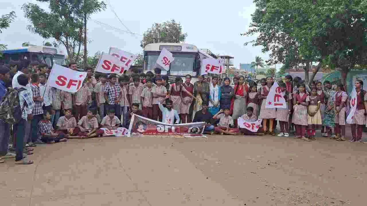 విద్యా సంస్థల సమయానికి ఆర్టీసీ అధికారులు బస్సులను నడిపించాలని డిమాండ్ చేస్తూ ఎస్ఎఫ్ఐ ఆధ్వర్యంలోని నాయకులు విద్యార్థులతో కలిసి బుధవారం వీర్నపల్లి మండల కేంద్రంలో ఆందోళన చేపట్టారు.