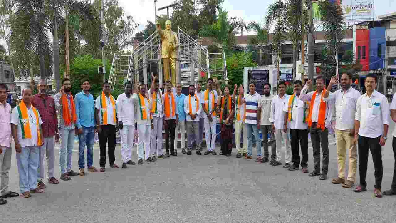 బీజేపీ రాష్ట్ర అధ్యక్షుడు రామ చందర్రావు, నాయకులను పోలీసులు అరెస్టు చేయడాన్ని నిరసిస్తూ శుక్రవా రం జిల్లా కేంద్రంలోని అంబేద్కర్ చౌరస్తా వద్ద సిరిసిల్ల పట్టణ శాఖ ఆధ్వర్యం లో నాయకులు ధర్నా చేపట్టారు.