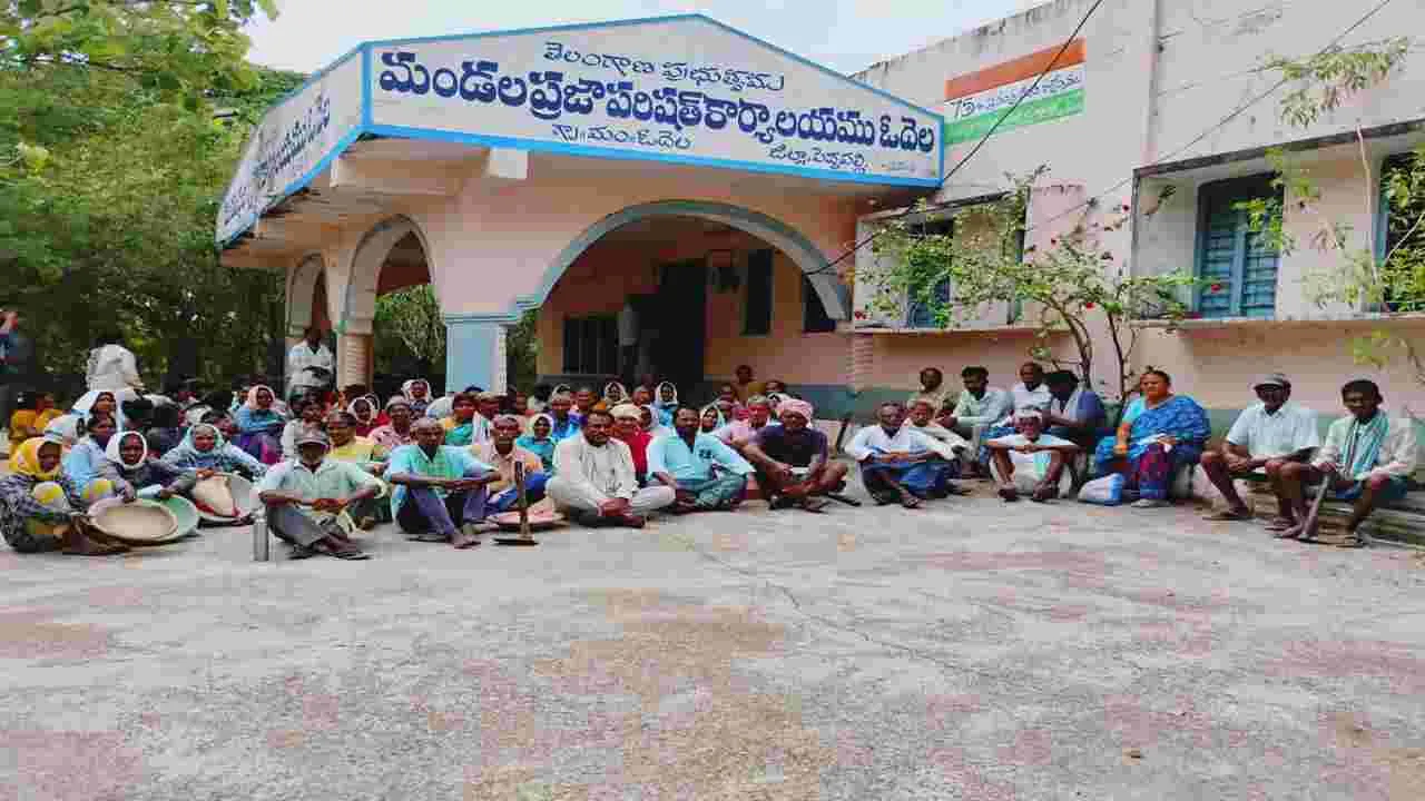 ఓదెల, మే 30 (ఆంధ్రజ్యోతి) : మండల పరిషత్ కార్యాలయం ఎదుట శుక్రవారం భీమరపల్లికి చెందిన 30 మంది ఉపాధిహామీ కూలీలు ధర్నా నిర్వహించారు. పలువురు కూలీలు మాట్లాడుతూ సాధ్యం కాని పనులను అప్పగిస్తూ తక్కువ కూలీలతో పనులు చేయాలని సంబంధిత టీఏ కూలీ లను ఇబ్బందులకు గురిచేస్తున్నాడని ఆవేదన వ్యక్తం చేశారు.