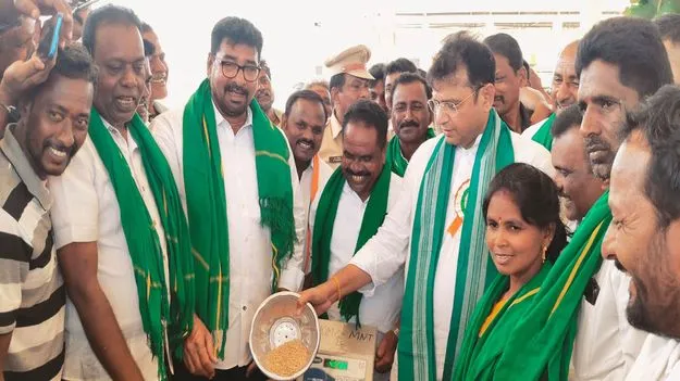 మంథని, ఏప్రిల్ 13 (ఆంధ్రజ్యోతి): రైతులు ఎలాంటి ఇబ్బందులు లేకుండా వారు పండించిన వరి ధాన్యం మొత్తం ప్రభుత్వం మద్దతు ధరతో కనుగోలు చేస్తుందని రాష్ట్ర ఐటీ, పరిశ్రమ శాఖ మంత్రి దుద్దిళ్ల శ్రీధర్బాబు తెలిపారు. స్థానిక మార్కెట్ యార్డులో పీఏసీఎస్ ఆధ్వర్యంలో ఏర్పాటు చేసిన ధాన్యం కొనుగోలు కేంద్రాన్ని మంత్రి శ్రీధర్బాబు ఆదివారం ప్రారంభించారు. ఈసందర్భంగా ఆయన మాట్లాడుతూ.. గత బీఆర్ఎస్ ప్రభుత్వంలో దాదాపు పదేళ్ల పాటు తాలు పేరిట క్వింటాల్కు నాలుగు కిలోల చొప్పున కట్ చేసిన విధంగా తమ ప్రభుత్వ హయాంలో రైతన్నలను ఎలాంటి ఇబ్బందులు పెట్టడంలేదన్నారు. రైతులు పండించిన ప్రతీ గింజను మద్దతు ధరలో ప్రభుత్వం కొనుగోలు చేసి వారి అకౌంట్లలో డబ్బులు వేస్తామదన్నారు. సన్నాలు పండించిన రైతులకు మద్దతు ధరతోపాటు ఐదు వందల రుపాయలు బోనస్ ఇచ్చి మరింతగా ప్రోత్సహిస్తున్నామన్నారు. రైతులందరికి అందుబాటులో వరి ధాన్యం కొనుగోలు కేంద్రాలు ఏర్పాటు చేస్తామన్నారు. వీటిని రైతులు సద్వినియోగం చేసుకోవాలని కోరారు. కార్యక్రమంలో పీఏసీఎస్ చైర్మన్ కొత్త శ్రీనివాస్, డైరెక్టర్లు, రెవెన్యూ, మార్కెటింగ్, పౌరసరఫరాల శాఖల అధికారులు, కాంగ్రెస్ పార్టీ నేతలు పాల్గొన్నారు.