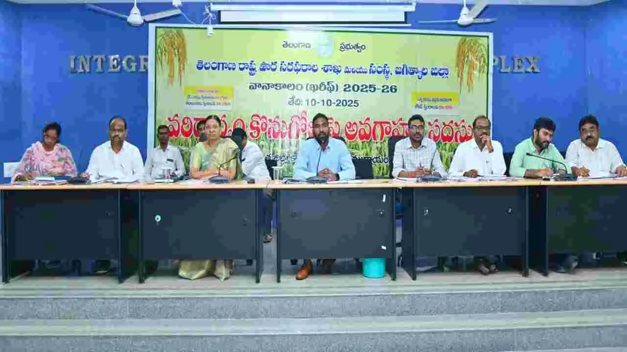 జగిత్యాల, అక్టోబరు 10 (ఆంధ్రజ్యోతి): వానాకాలం సీజన్కు సంబంధించిన ధాన్యాన్ని రైతులకు ఎలాంటి ఇబ్బందులు కలగకుండా కొనుగోళ్లు జరపాలని కలెక్టర్ సత్యప్రసాద్ సూచించారు. శుక్రవారం వానాకాలం ధాన్యం కొనుగోళ్లు అంశంపై సమీకృత కలెక్టరేట్ కార్యాలయం ఆడిటోరియంలో సంబంధిత అధికారులు, రైస్ మిల్లర్లతో సమీక్ష సమావేశం నిర్వహించారు. ఈ సందర్భంగా కలెక్టర్ మాట్లాడారు. కేంద్రాల్లో అన్ని వసతులు పక్కాగా ఉండేలా చూడాలన్నారు. జిల్లాలో 3.15 లక్షల ఎకరాల్లో వరి పంట సాగు అయిందని, సుమారు 7.50 లక్షల నుంచి ఎనిమిది లక్షల మెట్రిక్ టన్నుల వరకు ధాన్యం కొనుగోలుకు వస్తుందన్న అంచనా ఉందన్నారు. గ్రేడ్ - ఏ ధర 2,389 రూపాయలు కాగా బోనస్గా క్వింటాలుకు 500 రూపాయలు చెల్లించడం జరుగుతుందన్నారు. సాధారణ రకం వరి ధాన్యానికి 2,369 రూపాయల మద్దతు ధర ఉందన్నారు. జిల్లాలో 421 కొనుగోలు కేంద్రాలు ఏర్పాటు చేయనున్నట్లు తెలిపారు. సమావేశంలో అదనపు కలెక్టర్ బీఎస్ లత, డీఆర్డీవో రఘువరన్, డీఎస్వో జితేందర్రెడ్డి, సివిల్ సప్లయి డీఎం జితేంద్రప్రసాద్, మార్కెటింగ్ శాఖ అధికారి ప్రకాశ్, సహకార శాఖ అధికారి మనోజ్కుమార్ తదితరులు పాల్గొన్నారు.