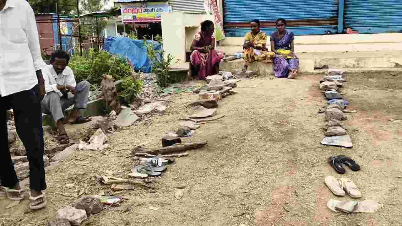 ఇల్లంతకుంట, సెప్టెంబరు 6(ఆంధ్రజ్యోతి) : యూరియా కోసం రైతుల కష్టాలు కొనసాగుతున్నాయి. యూరియా కోసం మండలంలోని పలు గ్రామాల రైతులు తీవ్ర ఇబ్బందులు పడుతున్నారు. ఎరువుల విక్రయకేంద్రాలు తెరువకముందే పిల్లపాపలతో కేంద్రం వద్దకు చేరుకుంటున్నారు. మండలకేంద్రంలోని మహిళా సంఘం ఆధ్వర్యంలో నడుస్తున్న విక్రయకేంద్రానికి చేరుకున్న రైతులు నిలబడే ఓపికలేకపోవడంతో వరుసలలో చెప్పులు, బండరాయిలు ఉంచారు. వ్యవసాయశాఖ అధికారులు మాత్రం రైతులు ఆందోళన చెందవద్దని, సరిపడా యూరియా అందుబాటులోకి వస్తుందని పేర్కొంటున్నారు.