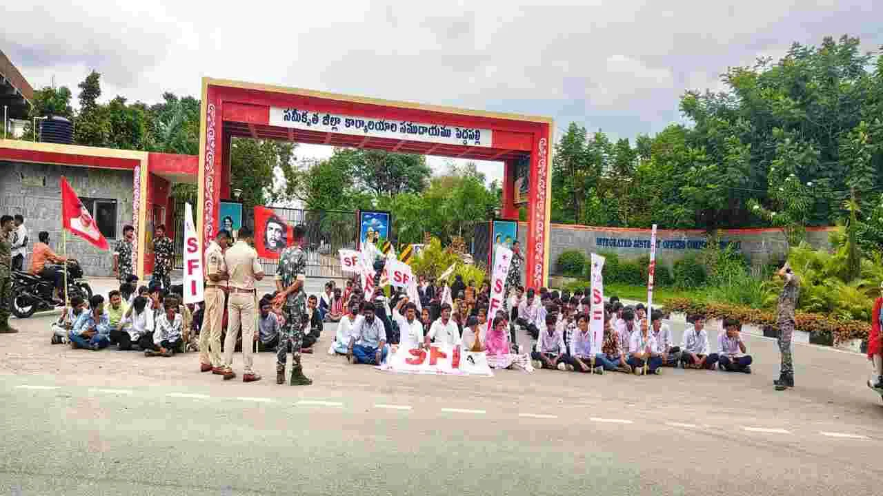 పెద్దపల్లి కల్చరల్, జూలై 7(ఆంధ్రజ్యోతి): రాష్ట్రంలో పెండింగ్లో ఉన్న స్కాలర్షిప్, ఫీజు రీయింబర్స్మెంట్ బకాయిలు వెంటనే విడుదల చేయాలని సోమవారం విద్యార్థి సంఘ నాయకులు, విద్యార్థులు ధర్నా నిర్వహించారు. రాష్ట్ర వ్యాప్త నిరసనలో భాగంగా కలెక్టరేట్ ఎదుట నిరసన తెలిపారు. అనంతరం ఎస్ఎఫ్ఐ జిల్లా అధ్యక్ష, కార్యదర్శులు ఆర్లసందీప్, జిల్లాల ప్రశాంత్ మాట్లాడుతూ కాంగ్రెస్ ప్రభుత్వం అధికారంలోకి వచ్చి 18 నెలలు అవుతున్నా, విద్యారంగ సమస్యలు పరిష్కరించడంలో విఫలమైందన్నారు.