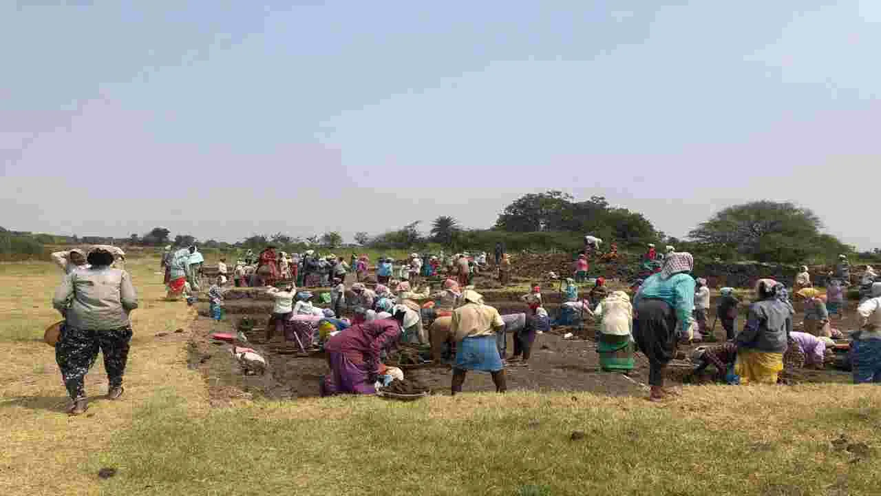 కరీంనగర్ రూరల్, మే 18 (ఆంధ్రజ్యోతి): కేంద్ర ప్రభుత్వం గ్రామాల్లో చేపల పెంపకం చేపట్టేందుకు చర్యలు చేపట్టింది. జాతీయ ఉపాధి హామీ పథకంలో చేపల కొలనుల నిర్మాణానికి నిధులు మంజూరు చేస్తోంది. 2005-26 ఆర్థిక సంవత్సరంలో కరీంనగర్ మండలానికి 12 చేపల కొలనుల యూనిట్లు మంజూరయ్యాయి. ప్రస్తుతం చెర్లబూత్కూర్, దుబ్బపల్లి, ఫకీర్ పేట, ఇరుకుల్ల, మొగ్దుంపూర్, నగునూర్ గ్రామాల్లో ఆరు చేపల కొలనులు నిర్మాణ పనులు నడుస్తున్నాయి. ఒక్కో కొలను 20 మీటర్ల పొడవు, 15 మీటర్ల వెడెల్పు 2 మీటర్ల లోతుతో నిర్మిస్తున్నారు. ఒక యూనిట్లో నాలుగు చేపల కొలనుల చొప్పున తవ్వుతున్నారు. ఒక చేపల కొలను నిర్మాణానికి మొత్తం 2,600 పనిదినాలను కూలీలకు కల్పించాల్సి ఉండగా, సుమారు 8.5 లక్షల రూపాయల వరకు ఖర్చు అవుతుందని ఉపాధిహామి అధికారులు తెలిపారు. ఆయా గ్రామాల్లో కొలనులు తవ్వేందుకు కూలీలు పెద్ద సంఖ్యలో తరలిస్తున్నారు. చేపల కొలనుల నిర్మాణంతో కూలీలకు పని లభిస్తుంది. వేసవి కాలం పూర్తయ్యేలోగా అన్ని గ్రామాల్లో చేపల కొలనులు నిర్మాణం పూర్తి చేయనున్నట్లు ఏపీవో శోభరాణి తెలిపారు. ఉపాధిహామీ పథకంలో చేపల కొలనుల నిర్మాణం పూర్తయితే వర్షాలు కురిసిన సమయంలో నీళ్ళు నిల్వ ఉండటంతో చేపలు పెంచుకునేందుకు అవకాశం ఉంటుంబది. ఆయా గ్రామాల్లోని చేపల కొలనుల్లో చేపలను పెంచేందుకు మత్స్యకారులకు డీఆర్డీఏ ద్వారా రుణాలను మంజూరు చేయనున్నారు. ఒక్కొక్కరికి 2లక్షల రూపాయల నుంచి 3లక్షల వరకు రుణంతో చేపల పిల్లల కొనుగోలు, దాణా, నీటి వసతికి ఖర్చు చేయాల్సి ఉంటుంది.