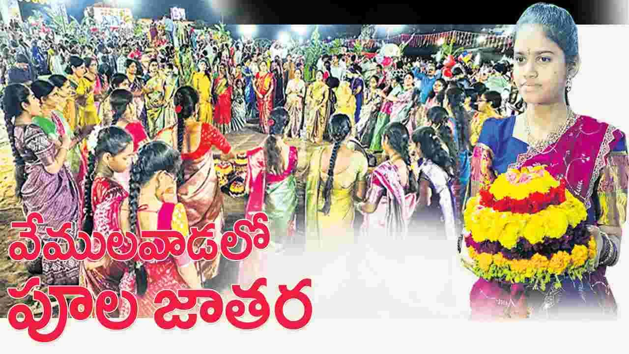 వేములవాడ శ్రీరాజరాజేశ్వర స్వామి ఆలయంలో బతుకమ్మ వేడుకలు ఏడు రోజులుగా వైభవంగా నిర్వహిస్తున్నారు. ఈవో రమాదేవి ఆధ్వర్యంలో ఆలయాన్ని విద్యుత్ దీపాలతో అందంగా అలంకరించారు. పట్టణానికి చెందిన మహిళలు ఆలయానికి తరలివచ్చి బతుకమ్మ ఆడి వద్ద కోలాటం, దండియా ఆటలాడడం ఆకట్టుకున్నాయి. అనంతరం ధర్మగుండంలో బతుకమ్మలను నిమజ్జనం చేసి వాయినం ఇచ్చిపుచ్చుకున్నారు.