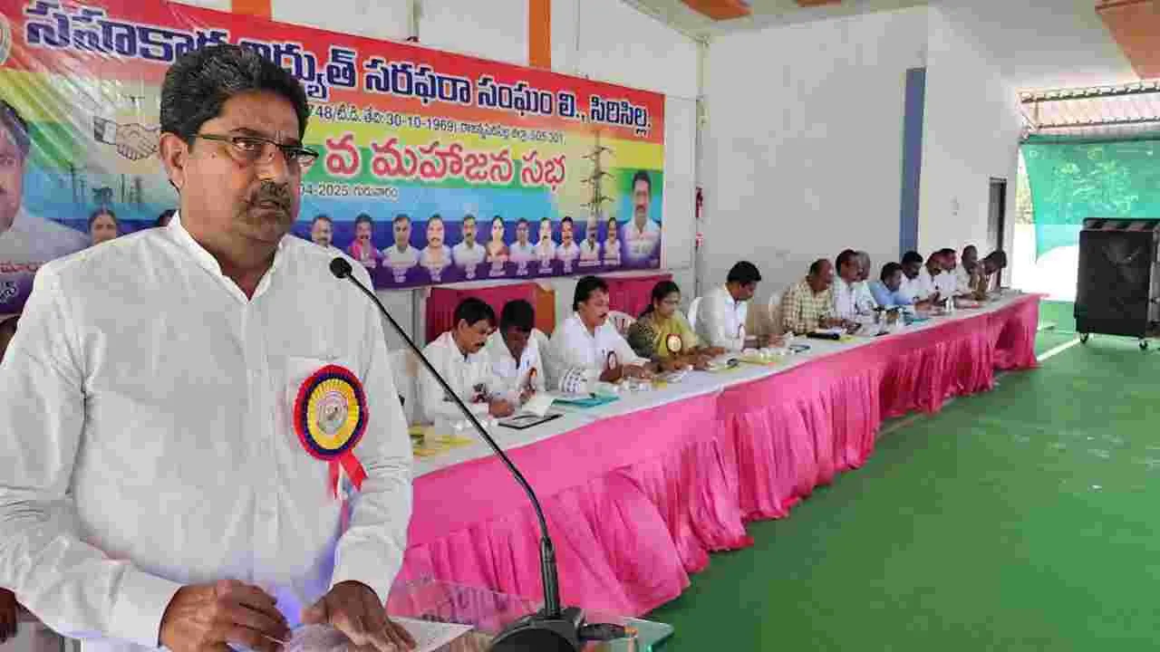 విద్యుత్ సమస్యలు, చేపట్టబోయే పనులు, ట్రాన్స్ఫార్మర్ల ఏర్పాటు, లూజ్వైర్లు, ఇతర సమస్యలపై వాడివేడీగా చర్చ సాగింది. సెస్లో జరిగిన అగ్నిప్రమాదంపై బాధ్యులపై చర్యలు ఏవని ప్రశ్నించారు. సెస్ స్టోర్ స్థలంలో నిర్మించిన రైతు బజార్ను స్వాధీనం చేసుకోవాలని సెస్ గ్రామ ప్రతినిధులు డిమాండ్ చేశారు. సిరిసిల్ల పద్మనాయక కల్యాణ మండపంలో గురువారం చైర్మన్ చిక్కాల రామారావు అధ్యక్షతన సిరిసిల్ల సహకార విద్యుత్ సరఫరా సంఘం 51వ మహాజన సభ జరిగింది. 20 అంశాలతో ప్రవేశపెట్టిన ఎజెండాపై చర్చలు జరిపి ఆమోదం తెలిపారు. 2025-2026 అంచనా బడ్జెట్ రూ.678 కోట్ల 39లక్షల 95 వేలను ఆమోదించారు. ఈసందర్భంగా సభ్యులు ఎజెండా అంశాలపై మొదట చర్చ లేకుండానే చప్పట్లతో ఆమోదం తెలుపుతున్న క్రమంలో పలువురు అభ్యంతరాలు వ్యక్తం చేశారు. చర్చ జరిగిన తర్వాత ఆమోదం ప్రకటించాలని సెస్ సిరిసిల్ల ప్రతినిఽధులు సత్యనారాయణ, సత్తార్, సంపత్రావు, నారాయణలు డిమాండ్ చేశారు. దీంతో సెస్ చైర్మన్ రామారావు ఎజెండాలోని అంశాల వారీగా చర్చలు జరుపుదామని అనుమతి ఇచ్చారు. ప్రతినిధి సత్యనారాయణ మాట్లాడుతూ సెస్ స్టోర్కు సంబంధించిన స్థలం మూడెకరాలు ప్రభుత్వం స్వాధీనం చేసుకొని రైతుబజార్ నిర్మించిందని, దానికి బదులుగా స్థలం ఇవ్వలేదని, తిరిగి రైతు బజార్ను స్వాధీనం చేసుకోవాలన్నారు. దీంతో పాటు ఎల్లారెడ్డిపేటలో పోలీస్ ఆధీనంలో ఉన్న సేవాసదన్ను కూడా తీసుకోవాలని పలువురు ప్రతినిధులు డిమాండ్ చేశారు. రైతు బజార్ను స్థలంలోనే తిరిగి స్టోర్ను నిర్మించడానికి ఆందోళనకు సైతం సిద్ధమంటూ పలువురు ప్రతినిధులు తెలిపారు. సెస్ చైర్మన్ సోమవారం తరువాత కలెక్టర్, ఇతర ప్రతినిధులు దృష్టికి తీసుకవెళ్లి చర్యలు తీసుకుందామని తెలిపారు. ఎల్లారెడ్డిపేట సేవాసదన్ కోసం పోలీస్ డిపార్ట్మెంట్ ఎస్పీలను కలిశామని, ఈసారి గట్టిగా ప్రయత్నం చేద్దామన్నారు. సెస్లో అగ్నిప్రమాదం జరిగిన సంఘటనలో బాధ్యులను సస్పెండ్ చేయాలని పలువురు డిమాండ్ చేశారు. చైర్మన్ సమాధానం ఇస్తూ అగ్ని ప్రమాదం జరిగిన వెంటనే పోలీసులకు ఫిర్యాదు చేశామని, విచారణ రిపోర్ట్ ఇంతవరకు ఇవ్వలేదని, రాగానే చర్యలు తీసుకుంటామన్నారు. ముస్తాబాద్ గ్రామ ప్రతినిధి కల్వకుంట్ల గోపాల్రావు మాట్లాడుతూ మల్లన్నసాగర్ కాలువల్లోకి నీళ్లు వస్తున్నాయని, రైతులు మోటార్లు పెట్టుకోవడం ద్వారా ట్రాన్స్ఫార్మర్లపై లోడ్ పెరిగి వ్యవసాయ కనెక్షన్దారులకు ఇబ్బందులు కలుగుతున్నాయని, అదనంగా ట్రాన్స్ఫార్మర్లు ఏర్పాటుచేయాలన్నారు. చైర్మన్ మాట్లాడుతూ ట్రాన్స్ఫార్మర్లు ఏర్పాటు చేయాలంటే ఇరిగేషన్ నుంచి అనుమతి అవసరం అవుతుందన్నారు. ప్రస్తుతం వ్యవసాయానికి 7 హెచ్పీ వరకు రాయితీ వస్తుందని, 15 హెచ్పీల వరకు కూడా వాడుతున్నారన్నార