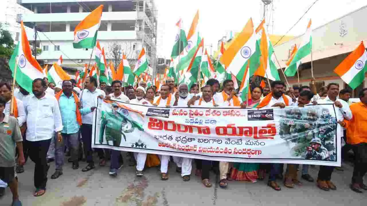 ఉగ్రదాడికి ప్రతి దాడి చేసి ప్రపంచ దేశాలకు భారత సైన్యం సత్తాచాటామని ఉపాధ్యాయ ఎమ్మెల్సీ మల్క కొమురయ్య, మాజీ ఎమ్మెల్యే గుజ్జుల రామక్రిష్ణారెడ్డి అన్నారు. కేంద్ర ప్రభుత్వం పిలుపులో భాగంగా పహెల్గాం వద్ద ఉగ్రవాదులు జరిపిన దాడికి ప్రతీకార దాడులను చేసి పాకిస్థాన్ దేశానికి తగిన గుణపాఠం చెప్పిన దేశ సైనికుల వెంట తామున్నామని జిల్లా కేంద్రంలో శుక్రవారం తిరంగా ర్యాలీ చేపట్టారు.