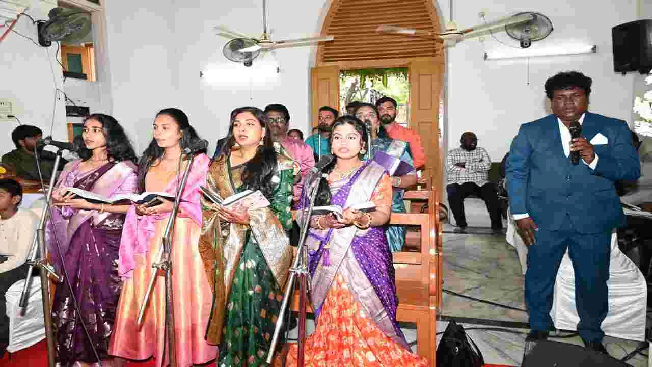 కరీంనగర్ కల్చరల్, డిసెంబర్ 25 (ఆంధ్రజ్యోతి) : ఏసుక్రీస్తు నామస్మరణలు... ప్రార్థనలు.. సందేశాలు... గీతాలతో గురువారం క్రిస్మస్ వేడుకలను ఘనంగా జరుపుకున్నారు. కేక్లు కోసి సంబరాలు చేసుకున్నారు. హాపీ క్రిస్మస్, మేరీ క్రిస్మస్ అంటూ శుభాకాంక్షలు తెలుపుకున్నారు. బైబిల్ను పఠించారు. ఆయా చర్చ్లలో క్వాయర్ బృందం, యువతీ యువకులు, విద్యార్థుల గీతాలు అలరించాయి. సీపీ నివాసానికి ఎదురుగా సీఎస్ఐ వెస్లి కెథడ్రల్ చర్చిలో ఫాస్టరేట్ చైర్మన్ పాల్ కొమ్మాలు ప్రార్థనలు చేయించి సందేశమిచ్చారు. క్రీస్తు చూపిన మార్గంలో నడవాలని, యేసు లోకంలో జన్మించి శాంతి, సమాధానంతో, ప్రేమతో వ్యక్తి మెలగే రీతిని తన జీవితం ద్వారా తెలిపారన్నారు. ఈ కార్యక్రమంలో ప్రెస్బిటర్ మధుమోహన్, ఫాస్టరేట్ సెక్రెటరీ జిబి సంజయ్ కుమార్, కోశాధికారి ముల్కల సంజయ్, డైసస్ లే సెక్రటరీ ఎర్ర జాకబ్, చర్చ్ కమిటీ సభ్యులు పాల్గొన్నారు. క్రిస్టియన్ కాలనీ సీఎస్ఐ సెంటినరీ వెస్లి చర్చిలో ఫాస్టరేట్ చైర్మన్ ఎస్ జాన్ ప్రత్యేక ప్రార్థనలను చేసి సందేశమిచ్చారు. యేసు చూపిన బాటలో నడిచి జీవితాన్ని సార్థకం చేసుకోవాలని, క్రీస్తు పాపాలను క్షమించి సన్మార్గంలో నడిపిస్తాడని అన్నారు. ఈ కార్యక్రమంలో అసిస్టెంట్ ప్రెస్బిటర్ పింటూ, సెక్రెటరీ సి సంజయ్ కుమార్, కోశాధికారి సి నారాయణ పాల్గొన్నారు. లూర్దు మాతా చర్చ్లో ఫాదర్ తుమ్మ సంతోష్రెడ్డి ప్రార్థనలు చేయించి సందేశమిచ్చారు. ఈ కార్యక్రమంలో అసిస్టెంట్ ఫాస్టర్ దేవరాజ్, చర్చి కమిటీ సభ్యులు డి ఇన్నారెడ్డి, బి జార్జిరెడ్డి, పి జోసఫ్ రాజ్, ఎస్ మరియ కుమార్, వివిధ డివిజన్లు, మండలాలు, గ్రామాలతో పాటు క్రైస్తవుల గృహాల్లో ప్రార్థనలు, క్రీస్తు జన్మదిన వేడుకలను జరుపుకున్నారు.