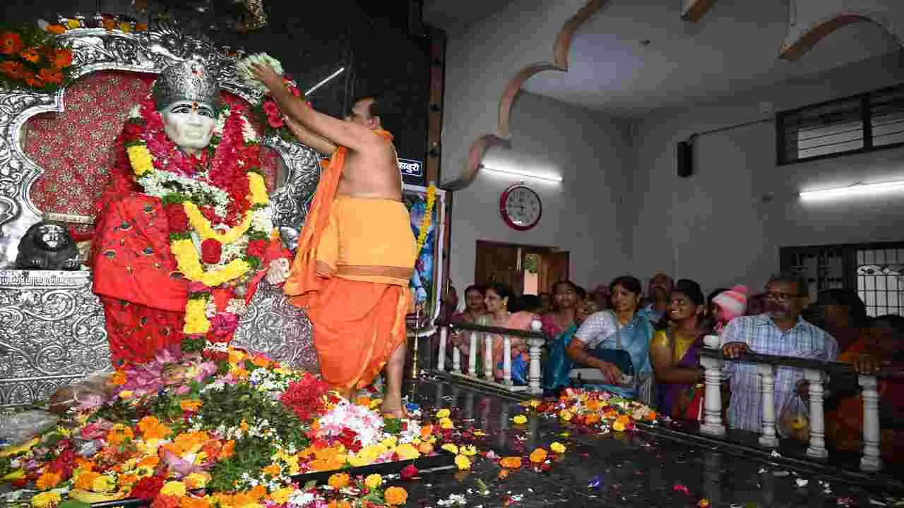 కరీంనగర్ కల్చరల్, జూలై 10 (ఆంధ్రజ్యోతి): జిల్లా కేంద్రంలోని వివిధ ఆలయాల్లో గురువారం గురుపౌర్ణమి పూజలను భక్తిశ్రద్ధలతో నిర్వహించారు. ఉదయం నుంచి సాయంత్రం వరకు ఆలయాల్లో సందడి కనిపించగా సాయి ఆలయాలు భక్తులతో పోటెత్తాయి. సాయినగర్ విజయగణపతి సాయిబాబా దేవాలయంలో ఉదయం అభిషేకం, పుష్పార్చన, విశేషాలంకారం, మధ్యాహ్నం అన్నప్రసాద వితరణ జరిగాయి. 24 గంటల అఖండ సాయి నామ సంకీర్తన ప్రారంభించారు. సాయంత్రం పల్లకీసేవ నిర్వహించారు. భాగ్యనగర్ సాయిబాబా ఆలయంలో అభిషేకాలు, హవనం, అన్నప్రసాద వితరణ నిర్వహించారు. సాయంత్రం పల్లకీ సేవ జరిగింది. రామచంద్రాపూర్ కాలనీ సాయిబాబా దేవాలయంలో గణపతి హోమం, విఘ్నేశ్వర, దత్తాత్రేయ, సాయిబాబా మూర్తులకు అభిషేకం, అర్చనలు, అన్నప్రసాద వితరణ జరిగాయి. వేదభవనంలో పలు కార్యక్రమాలు నిర్వహించారు. అశోక్నగర్ మళయాళ సద్గురు గీతామందిర సన్యాస మఠంలో మఠాధిపతి విష్ణుసేవానందగిరిస్వామి ఆధ్వర్యంలో భగవన్నామ జప మంత్రాలు ప్రారంభించారు. బొమ్మకల్రోడ్లోని పంచముఖ హనుమాన్ ఆలయంలో పీఠాధిపతి పరబ్రహ్మానంగిరిస్వామికి సన్మానం, గురుపూజ చేశారు. టీటీడి కల్యాణ మండపంలో పతంజలి యోగా సమితి ఆద్వర్యంలో మళయాళ సద్గురు గీతామందిర సన్యాస మఠంలో మఠాధిపతి విష్ణుసేవానందగిరిస్వామి నేతృత్వంలో ఆర్యసమాజ్ పురోహితుడు శంకరయ్య హవనం నిర్వహించారు.