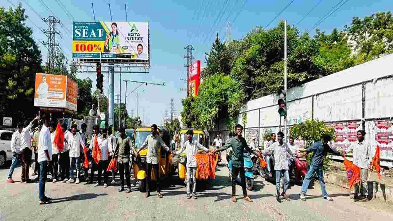 గణేశ్నగర్, నవంబరు 10 (ఆంధ్రజ్యోతి): పెండింగ్లో ఉన్న ఫీజు రీయింబర్స్మెంట్, స్కాలర్షిప్స్ విడుదల చేయాలని ఏబీవీపీ ఆధ్వర్యంలో ఎస్సారార్ కళాశాల ఎదుట సోమవారం మానవహారం నిర్వహించారు. ఈ సందర్భంగా ఏబీవీపీ నగర కార్యదర్శి యోగేష్ మాట్లాడుతూ తాము అధికారంలోకి వస్తే విద్యారంగ సమస్యలు పరిష్కరిస్తామని ఇచ్చిన హామీలను కాంగ్రెస్ ప్రభుత్వం పట్టించుకోవడం లేదని విమర్శించారు. ఇందిరమ్మ రాజ్యం అంటే విద్యార్థులకు విద్యను దూరం చేయడమేనా అని ప్రశ్నించారు. ఫీజు రీయింబర్స్మెంట్, స్కాలర్షిప్ బకాయిలను వెంటనే చెల్లించాలని డిమాండ్ చేశారు. లేకపోతే రాష్ట్రంలో మంత్రులు, ఎమ్మెల్యేలు తిరగకుండా అడ్డుకుంటామని హెచ్చరించారు. కార్యక్రమంలో ఏబీవీపీ నాయకులు విగ్నేష్, వంశీ, విష్ణు, థామస్, అభి, కోషిక్, మనోజ్, శివ సాయి, నిఖిల్, ప్రశాంత్, ఆకాష్, మురళి, రాజేష్, సాయికృష్ణ పాల్గొన్నారు.