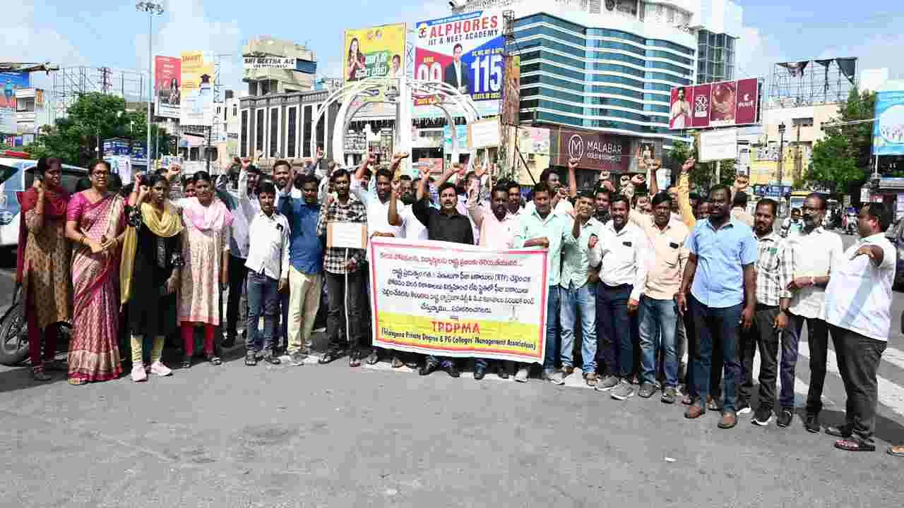 - అధ్యాపకులు, విద్యార్థులతో కలిసి యాజమాన్య సంఘం నిరసన