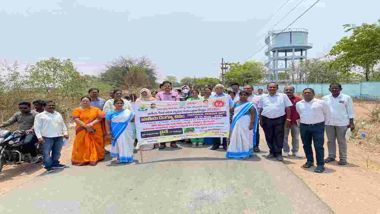 భగత్నగర్, మే 16(ఆంధ్రజ్యోతి): ఇంటి పరిసరాల్లో శుభ్రంగా ఉంచుకోవాలని జిల్లా వైద్యఆరోగ్యశాఖ అధికారి డాక్టర్ వెంకటరమణ పేర్కొన్నారు. జాతీయ డెంగ్యూ వ్యాధి దినం సందర్భంగా శుక్రవారం కొత్తపల్లి ప్రాథమిక ఆరోగ్య కేంద్రం ఆధ్వర్యంలో అవగాహన ర్యాలీ నిర్వహించారు. జిల్లా వైద్యఆరోగ్యశాఖ అధికారి డాక్టర్ వెంకటరమణ జెండా ఊపి ర్యాలీని ప్రారంభించారు. ఈ సందర్భంగా ఆయన మాట్లాడుతూ ఈ సంవత్సరం చెక్, క్లీన్, కవర్ అనే ప్రతిజ్ఞతో డెంగ్యూ దినం జరుపుకుంటున్నామని తెలిపారు. ఇన్ఫెక్టెడ్ ఆడ ఏడిస్ ఈజిప్ట్ దోమకాటు వల్ల డెంగ్యూ వ్యాధి వ్యాప్తి చెందుతుందన్నారు. దోమలు వృద్ధి చెందకుండా ఇంటి పరిసర ప్రాంతాల్లో నీరు నిల్వ ఉండకుండా పరిశుభ్రంగా ఉంచుకోవాలని సూచించారు. నీరు నిల్వ ఉండే ట్యాంకులు, డ్రమ్ములు, ఇతర పాత్రలపై మూతలు ఉంచాలని, శరీరాన్ని కప్పిఉంచేలా దస్తులు ధరించాలని సూచించారు. ప్రతి శుక్రవారం డ్రైడేగా పాటించాలన్నారు. అధిక జ్వరం, తలనొప్పి, కీళ్లు, కండరాల నొప్పి, ముక్కు, చిగుళ్ల నుంచి తేలికపాటి రక్తస్రావం వంటి డెంగ్యూ లక్షణాలను ముందుస్తుగా సకాలంలో గుర్తిస్తే సరైన చకిత్స అందించవచ్చన్నారు. ఈ కార్యక్రమంలో డీటీసీవో డాక్టర్ రవీందర్రెడ్డి, పీవోడీటీ డాక్టర్ ఉమాశ్రీ, డీఐఓ డాక్టర్ సాజిదా, ఎన్సీడీ పీవో డాక్టర్ విప్లవశ్రీ, ఎంసీహెచ్పీవో డాక్టర్ సనజవేరియా, డీఎంవో డాక్టర్ శైలేంద్ర, డెమో రాజగోపాల్, డీపీవో స్వామి, మెడికల్ ఆఫీసర్ నజియా, సబ్ యూనిట్ ఆఫీసర్ రామనాథం, మల్లయ్య ఇతర సిబ్బంది పాల్గొన్నారు.