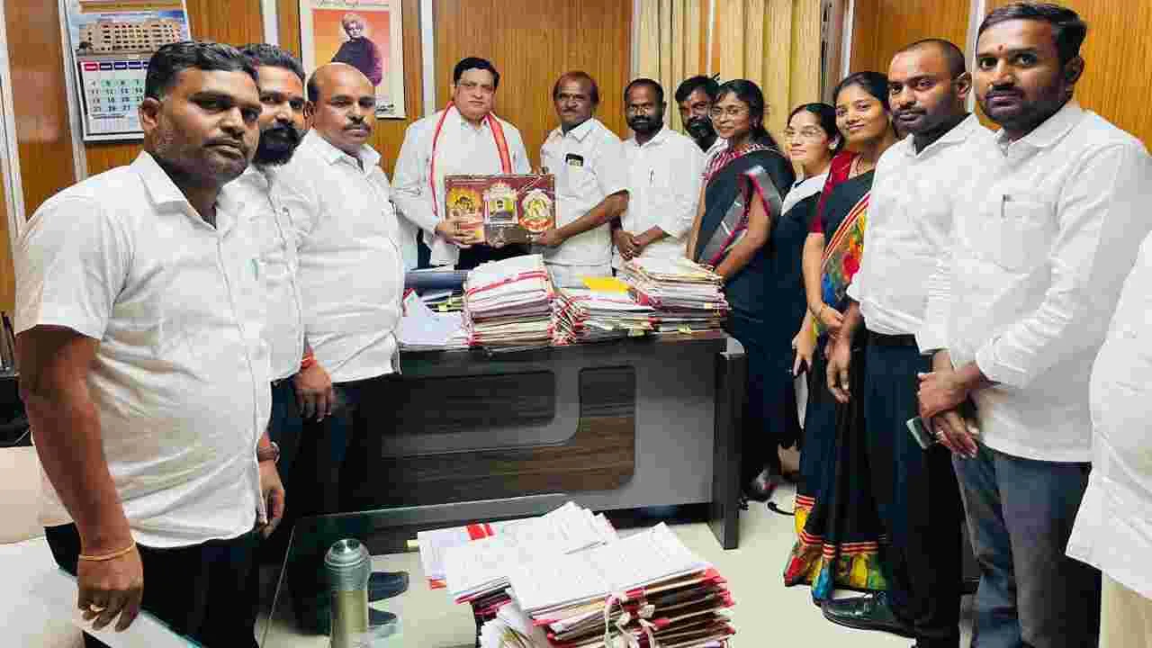సిరిసిల్ల క్రైం, మే 1 (ఆంధ్రజ్యోతి): రాష్ట్ర హైకోర్టు న్యాయమూర్తి, జిల్లా కోర్టు అడ్మినిస్ట్రేటివ్ జడ్జి నామవరపు రాజేశ్వర్రావును సిరిసిల్ల బార్ అసోసియేషన్ ఆధ్వర్యంలో గురువారం హైద్రాబాద్లోని హైకోర్టు లో న్యాయవాదులు మర్యాదపూర్వకంగా కలిసి శ్రీరాజరాజేశ్వరస్వామి చిత్రపటం, స్వామివారి ప్రసాదం అందజేశారు. అనంతరం హైకోర్టు న్యాయమూర్తి జె.శ్రీనివాసరావును, సచివాలయంలో న్యాయశాఖ కార్య దర్శి ఆర్.తిరుపతిని న్యాయవాదులు మర్యాదపూర్వకంగా కలిసి స్వామి వారి చిత్రపటం, ప్రసాదం అందజేసి వినతిపత్రం సమర్పించారు. ఈ సందర్భంగా సిరిసిల్లలో రూ.86.74కోట్లతో నిర్మించే న్యాయ నిర్మాణ్ నూ తన భవనానికి వెంటనే టెండర్లు పూర్తిచేసి పనులు ప్రారంభించాలని, కరీంనగర్లో ఉన్న ఎస్సీ, ఎస్టీ కోర్టును విభజించి సిరిసిల్లలో నూతనం గా ఎస్సీ, ఎస్టీ కోర్టును ఏర్పాటుచేయాలని హైకోర్టు న్యాయమూర్తులు జస్టిస్ రాజేశ్వర్రావు, జస్టిస్ శ్రీనివాసరావులను, జూనియర్లకు హెల్త్ ఇన్సూరెన్స్ సౌకర్యం కల్పించాలని న్యాయశాఖ కార్యదర్శి తిరుపతిని న్యాయవాదులు కలిసి విజ్ఞప్తి చేశారు. ఈ కార్యక్రమంలో సిరిసిల్ల బార్ అసోసియేషన్ అధ్యక్షులు జూపల్లి శ్రీనివాసరావు, ప్రధాన కార్యదర్శి తంగళ్లపల్లి వెంకటి, ఉపాధ్యక్షులు ఎస్. అనిల్కుమార్, కోశాధికారి వే ముల నరేశ్, క్రీడలు, సాంస్కృతిక కార్యదర్శి నర్మెట్ట రమేశ్, గ్రంథాల య కార్యదర్శి వుచ్చిడి శరత్రెడ్డి, మహిళా ప్రతినిధి ఎం. పుష్పలత, సీనియర్ న్యాయవాదులు జనార్ధన్రెడ్డి, అన్నల్దాస్ వేణు, కడగండ్ల తిరుపతి, బూర్ల కళ్యాణి, బి. అనీలలు పాల్గొన్నారు.