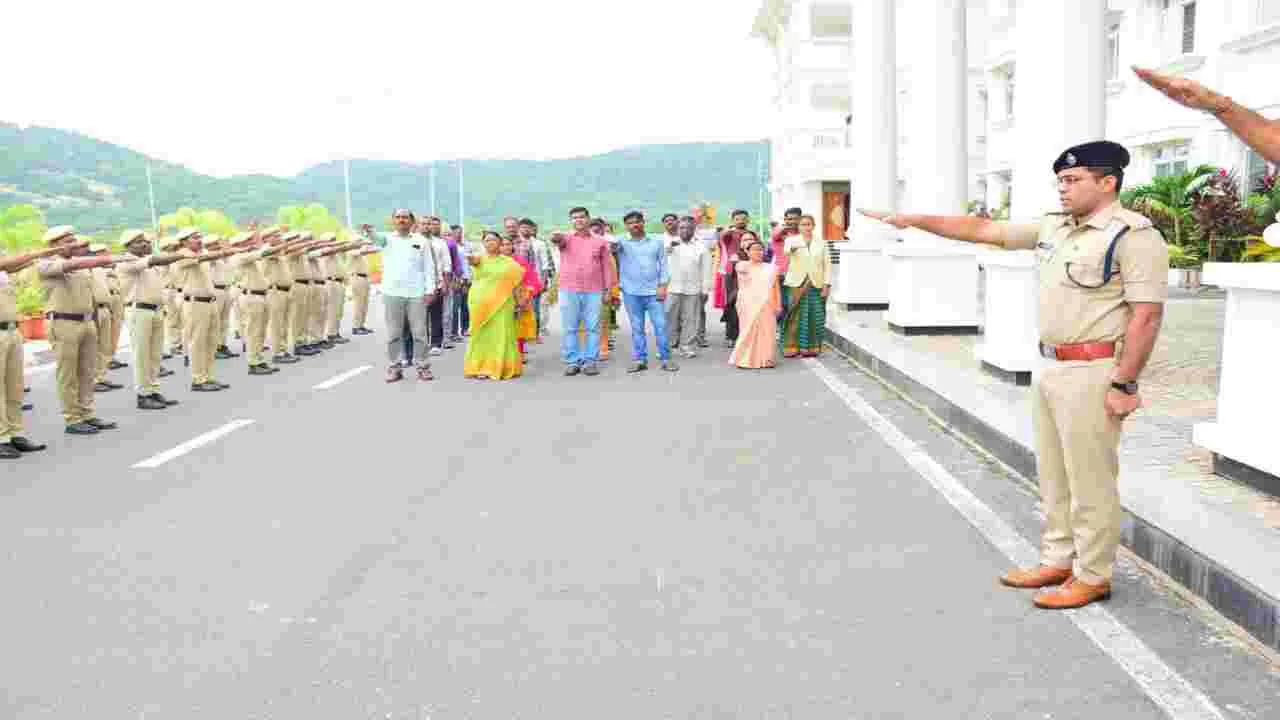 సిరిసిల్ల, క్రైం, ఆగస్టు 13 (ఆంధ్రజ్యోతి) : డ్రగ్స్ మహమ్మారిని నిర్మూలించి భావి తరాలకు మంచి భవిష్యత్తును అందిద్దామని ఎస్పీ మహేష్ బీ గీతే అన్నారు. జిల్లా పోలీస్ కార్యాలయ ఆవరణలో మాదకద్రవ్యాల నిర్మూలనకు ప్రతిజ్ఞ చేశారు. ఎస్పీ మాట్లాడుతూ మాదకద్రవ్యాలపై జరుగుతున్న పోరాటంలో ప్రతిఒక్కరు నడుం బిగించాలన్నారు. అడ్మినిస్ట్రేషన్ అధికారి పద్మ, సీఐలు నటేష్, రవి, ఆర్ఐలు రమేష్, మధుకర్, యాదగిరి, ఎస్ఐలు శ్రీకాంత్, ప్రేమానం దం, జునైద్, శ్రవణ్, శ్రీనివాస్, రమేష్, పోలీస్ సిబ్బంది, కార్యాలయ సిబ్బంది పాల్గొన్నారు.
