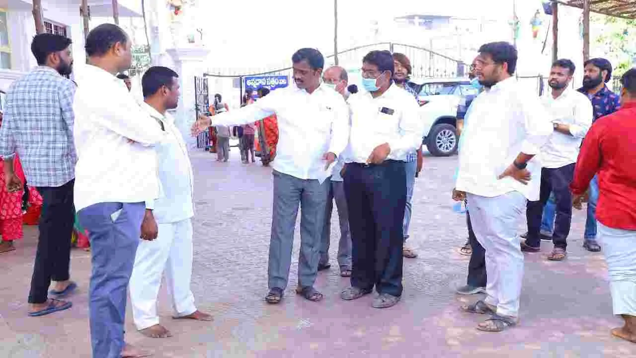 వేములవాడ కల్చరల్, ఫిబ్రవరి 12 (ఆంధ్రజ్యోతి): వేములవాడలో ఈనెల 25వ తేది నుంచి 27వ వరకు నిర్వహించే మహాశివరాత్రి జాతరను అంగరంగ వైభవంగా నిర్వహిస్తామని, గత సంవత్సరం మహా శివరాత్రి జాతరలో భక్తులకు ఇబ్బందులు తలెత్తిన సమస్యలను పరిష్కరించుకుని ముందుకు సాగుతామని రాజన్న ఆలయ ఈవో వినోద్రెడ్డి అన్నారు. మహా శివరాత్రి సందర్భంగా రాజన్న ఆలయ పరిసరాల్లో నిర్వహించే కోడె క్యూలైన్, ఉచిత టిఫిన్, భోజనం, లడ్డూ కౌంటర్, సులభ్ కాంప్లెక్స్, పార్కింగ్ ఏరియా, చలువ పందిళ్ల ఏర్పాట్లను క్షేత్ర స్థాయిలో పరిశీలించారు. ఈసందర్భంగా ఈవో మాట్లాడుతూ ఈనెల 25,26,27వ తేదిల్లో నిర్వహించే మహాశివరాత్రి జాతరకు భక్తులు పెద్దసంఖ్యలో రానున్నారని తెలిపారు. సుమారు నాలుగు లక్షల మంది వరకు భక్తులు రానున్నారని అన్నారు. రాజన్న ఆలయానికి వచ్చే సామాన్య భక్తులకు ఇబ్బందులు తలెత్తకుండా పకడ్బందీ ఏర్పాట్లను దగ్గరుండి చూసుకోవాలని అన్నారు. గతంలో జరిగిన ఇబ్బందులు ఏమైనా ఉంటే వాటిని సరిదిద్దుకుని ముందుకు సాగాలని సూచించారు. భక్తులకు అన్నిరకాల సౌకర్యాలను అందుబాటులో తీసుకువచ్చేందుకు ప్రయత్నం చేస్తున్నామన్నారు. భక్తులు శ్రీస్వామివారిని దర్శించుకునే సమయంలో క్యూలైన్లో ఎలాంటి ఇబ్బందులు తలెత్తకుండా చర్యలు తీసుకుంటున్నామన్నారు. మహా శివరాత్రిని వైభవంగా నిర్వహించేందుకు అన్ని శాఖల అధికారులు, ఉద్యోగుల సమన్వయంతో ముందుకు వెళుతున్నామని తెలిపారు. ఆయన వెంట ఈఈ రాజేష్, డీఈ రఘునందర్, ఏఈవో శ్రావణ్ పర్యవేక్షకులు వరి నర్సయ్య, సంజీవరావు తదితరులు ఉన్నారు.