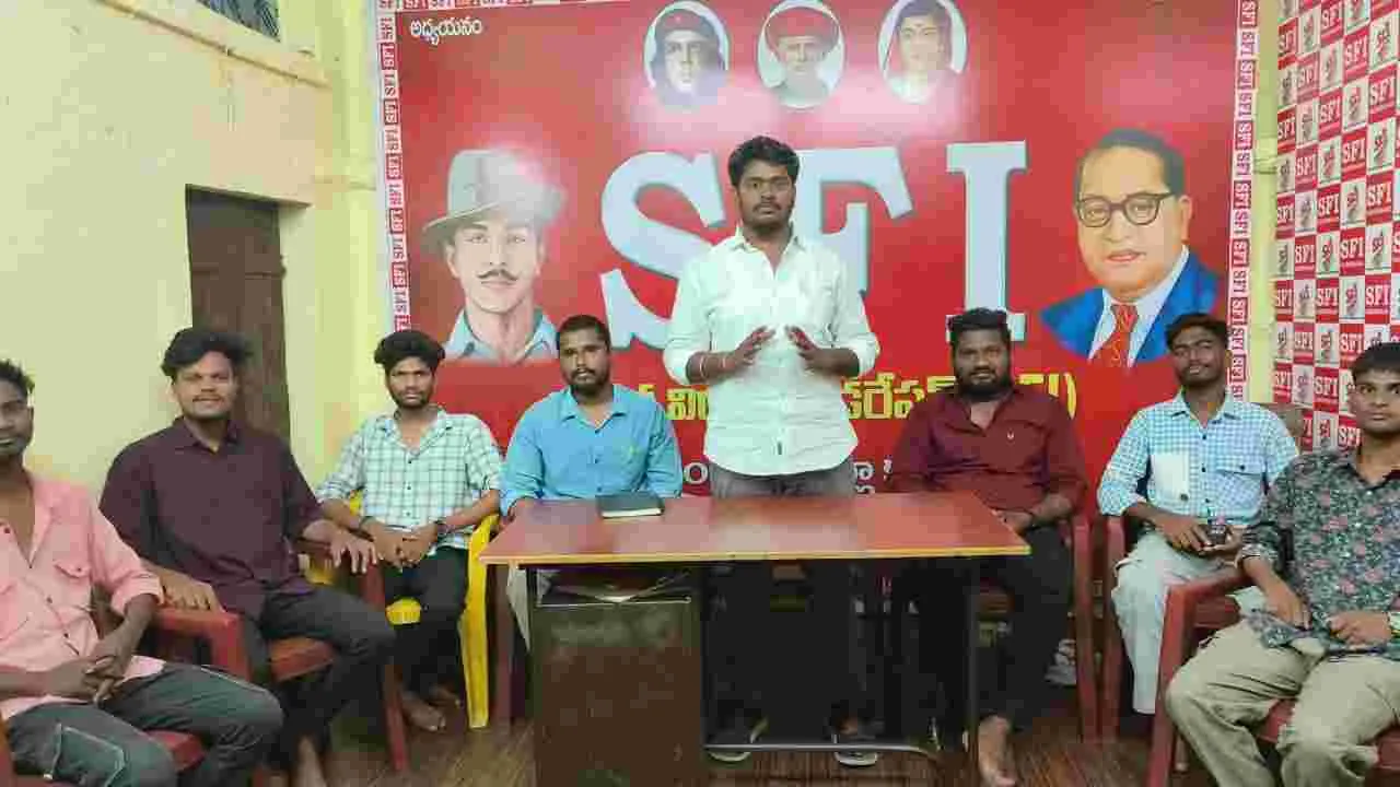 ఫీజు రీయింబర్స్మెంట్, స్కాలర్షిప్లు విడుదల చేయాలని డిమాండ్ చేస్తూ ఈనెల 30న రాష్ట్ర వ్యాప్తంగా నిర్వహించే డిగ్రీ, పీజీ, ఇంజనీరింగ్ కళాశాలలు, యూనివర్సిటీల బంద్ను విజయవంతం చేయాలని ఎస్ఎఫ్ఐ జిల్లా కార్యదర్శి గజ్జెల శ్రీకాంత్ పిలుపునిచ్చారు.