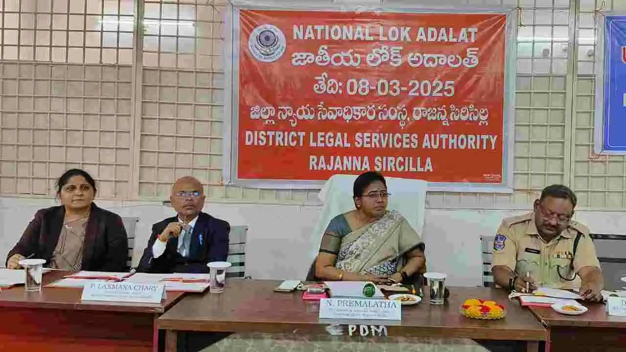 సిరిసిల్ల క్రైం, ఫిబ్రవరి 20 (ఆంధ్రజ్యోతి): మార్చి 8న నిర్వహించే జాతీయ మెగా లోక్ అదాలత్ను సద్వినియోగం చేసుకోవాలని న్యాయ సేవాధికార సంస్థ చైర్పర్సన్, జిల్లా జడ్జి ఎన్ ప్రేమలత అన్నారు. గురువారం న్యాయ సేవాధికార సంస్థ ఆధ్వర్యం లో జిల్లా కోర్టులో పీపీలు, పోలీస్ అధికారులతో సమన్వయ సమావేశం ఏర్పాటు చేశారు. ఈ సందర్భంగా ఆమె మాట్లాడుతూ నేషనల్ లోక్ అదాలత్లో అధిక సంఖ్య లో కేసులను పరిష్కరించాలని కోరారు. దాదాపు 1200కు పైగా పెండింగ్ కేసులు ఉన్నాయని, ఇందులో పోలీస్ స్టేషన్ల వారీగా తమ లక్ష్యాన్ని చేరుకోవాలని ఆమె అన్నారు. ఈ సమావేశంలో అడిషనల్ ఎస్పీ డి చంద్రయ్య, సీనియర్ సివిల్ జడ్జిలు లక్స్మణ చారి, న్యాయ సేవాధికార సంస్థ కార్యదర్శి రాధికా జైస్వాల్, జూనియర్ సివిల్ జడ్జిలు ఏ ప్రవీణ్, సృజన, జ్యోతిర్మయి, జయశ్రీ, మేఘన, ఏపీపీలు విక్రాంత్, సతీష్ సందీప్, అదనపు పీపీ పెంట శ్రీనివాస్లు పాల్గొన్నారు.
