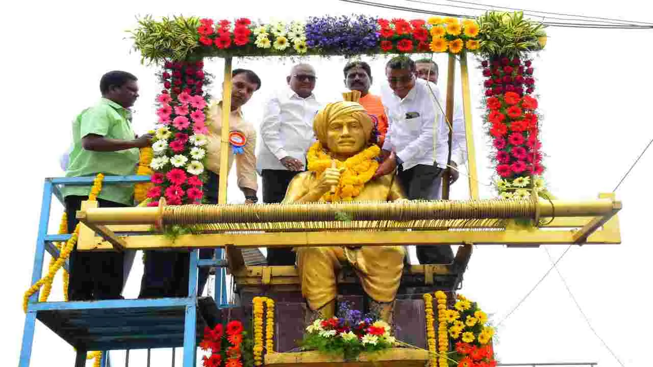 జిల్లాకేంద్రంలో సామాజిక సమరసత వేదిక ఆధ్వర్యంలో జా తీయ చేనేత దినోత్సవం ఘనంగా నిర్వహించారు. స్థానిక నేత న్న విగ్రహానికి నాయకులు పూలమాలలు వేశారు. అనంతరం ఖాదీభవన్లో చేనేత కళాకారులు ఆడెపు పోషవ్వ, తేల్ల కనకవ్వ, వెంగల రవీందర్, గుంటుక మధుసూదన్, రిక్కుమల్ల కొమ రయ్య, మంగళారపు రాజేశం, కళ్యాడపు దేవదాస్, ఖాదీ నిర్వా హకుడు ఆడెపు రమేష్లను సన్మానించారు. ఈ కార్యక్రమంలో సామాజిక సమరసత వేదిక జిల్లా నాయకులు మోర శ్రీనివాస్, కోడం రవి, గూడూరి భాస్కర్, వివిధ పార్టీల నాయకులు నాగుల శ్రీనివాస్, దూడం శ్రీనివాస్, చిమ్మని ప్రకాష్, మాదాసు శ్రీనివాస్, గుడ్ల విష్ణు, గుజ్జె శివరాం, గాజుల వేణు, దాసరి శ్రీనివాస్, నవీన్యాదవ్ తది తరులు పాల్గొన్నారు.