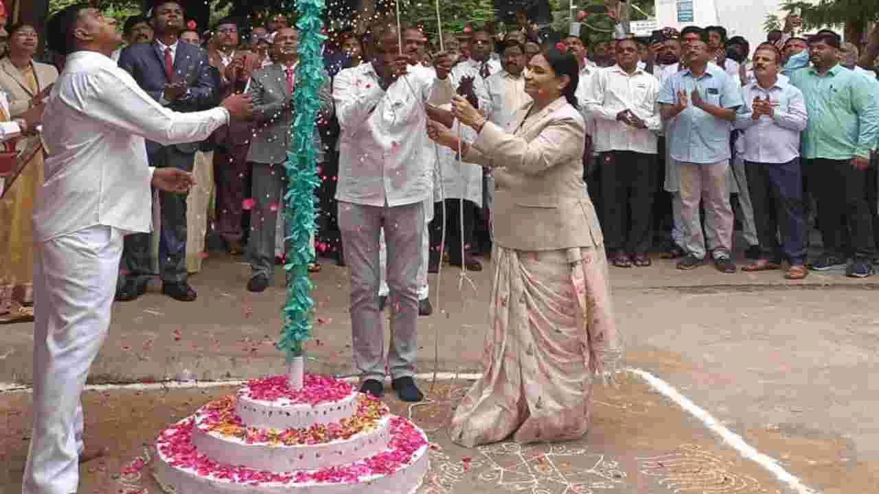 సిరిసిల్ల క్రైం, ఆగస్టు 15(ఆంధ్రజ్యోతి): ప్రతి ఒక్కరు దేశసేవకు పునరంకితం కావాలని ఎస్పీ మహేశ్ బి. గీతే అన్నారు. శుక్రవారం జిల్లా పోలీసు కార్యాల యం ఆవరణలో స్వాతంత్య్ర దినోత్సవాన్ని పురస్కరించుకొని జాతీయ జెండాను ఎస్పీ ఎగురవేశారు. ఈ సందర్భంగా ఆయన మాట్లాడుతూ స్వాతంత్య్ర పోరాటా న్ని గుర్తుచేసుకోవడం, దేశానికి స్వేచ్చ కల్పించిన త్యాగధనులను స్మరించుకోవ డం మనందరి బాధ్యత అన్నారు. పోలీసు అధికారులు జాతీ సమగ్రత, సమా జంలో శాంతి స్థాపనకు కృషిచేయాలన్నారు. ఎందరో మహానుభావుల త్యాగఫల మే మనమంతా స్వేచ్ఛగా జీవిస్తున్నామన్నారు. మహానుభావుల త్యాగాలను నిరంతరం స్ఫూర్తిగా తీసుకొని ముందుకు వెళ్లాలన్నారు. ఈ కార్యక్రమంలో డీఎస్పీ చంద్రశేఖర్రెడ్డి, సిఐలు, ఎస్ఐలు పాల్గొన్నారు.