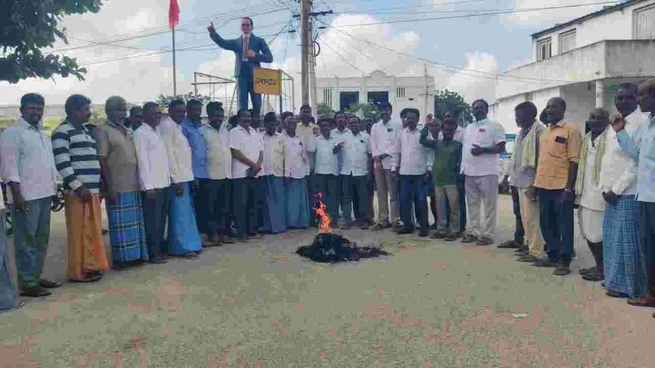పంచాయతీ కార్యదర్శి దిష్టిబొమ్మ దహనం
