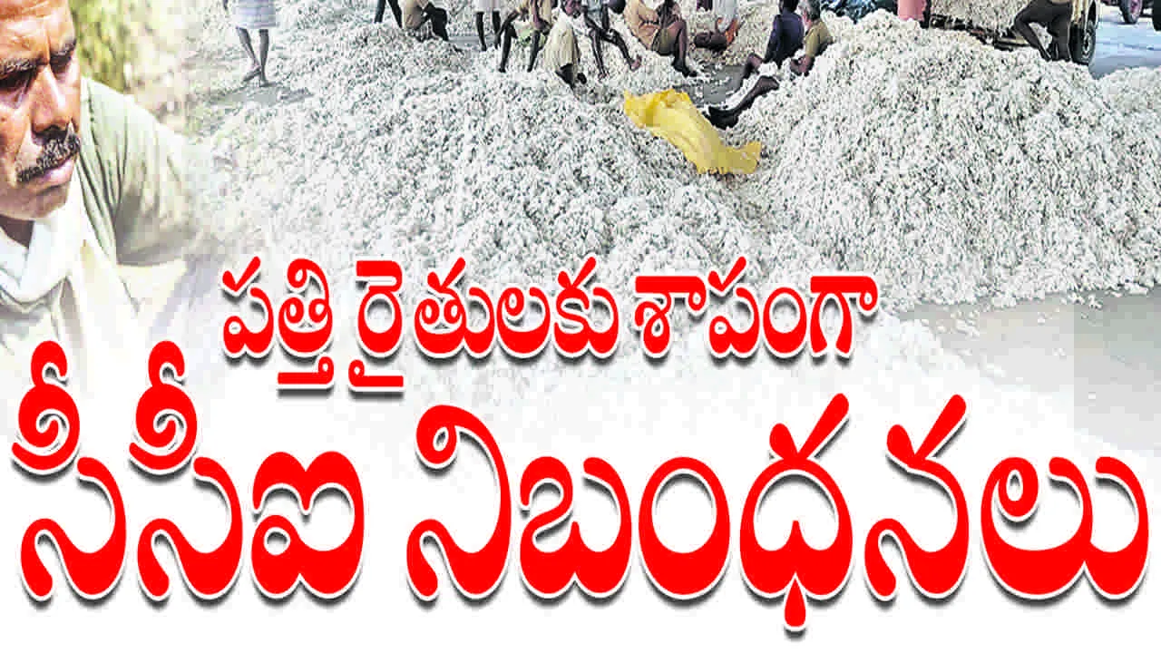 (ఆంధ్రజ్యోతి, పెద్దపల్లి) పత్తి రైతులకు కాటన్ కార్పొరేషన్ ఆఫ్ ఇండియా నిబంధనలు శాపంగా మారాయి. మార్కెట్ యార్డుల్లో కాకుండా జిన్నింగ్ మిల్లులు ఉన్న చోటే సీసీఐ కొను గోలు కేంద్రాలను ఏర్పాటు చేస్తుండడంతో రైతులకు మద్దతు ధరలు దక్కకుండా పోతున్నాయి.