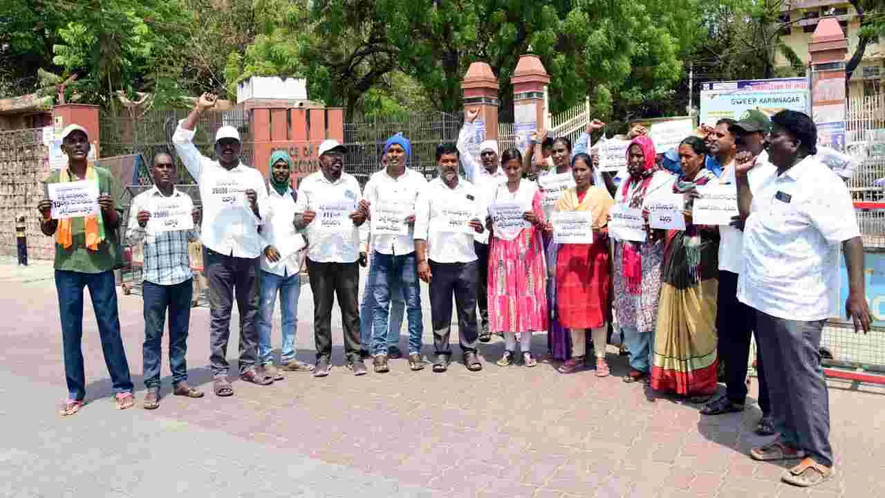 సుభాష్నగర్, ఏప్రిల్ 21 (ఆంధ్రజ్యోతి): మూడు నెలలుగా పెండింగ్లో ఉన్న వేతనాలు చెల్లించాలని కోరుతూ మహాత్మాగాంధీ జాతీయ ఉపాధి హామి పథకంలో పనిచేస్తున్న ఫీల్డ్ అసిస్టెంట్లు కలెక్టరేట్ ఎదుట సోమవారం ధర్నా నిర్వహించారు. ఈ సందర్భంగా తెలంగాణ ఫీల్డ్ అసిస్టెంట్స్, అగ్రికల్చర్ వర్కర్స్ యూనియన్ జిల్లా అధ్యక్షుడు పత్తం యాదగిరి మాట్లాడుతూ గ్రామాల్లో కూలీలకు నిత్యం అందుబాటులో ఉంటూ ఉపాధి పనులే కాకుండా ప్రభుత్వం చేపడుతున్న సంక్షేమ పథకాల అమలులో తమవంతు కృషి చేస్తున్నామని తెలిపారు. తమ సేవలను ప్రభుత్వాలు గుర్తించకపోవడం బాధాకరమన్నారు. కాంగ్రెస్ ఎన్నికల మెనిఫేస్టోలో ఫీల్డ్ అసిస్టెంట్లకు పేస్కేలు వర్తింపచేస్తూ, వేతనాలు పెంచి, ఉద్యోగ భద్రత కల్పిస్తామని హామీ ఇచ్చినట్లు తెలిపారు. ప్రభుత్వం ఎన్నికల హామీలను నెరవేర్చాలని కోరారు. మూడు నెలలుగా పెండింగ్లో ఉన్నజీతాలను తక్షణమే చెల్లించాలని డిమాండ్ చేశారు.
