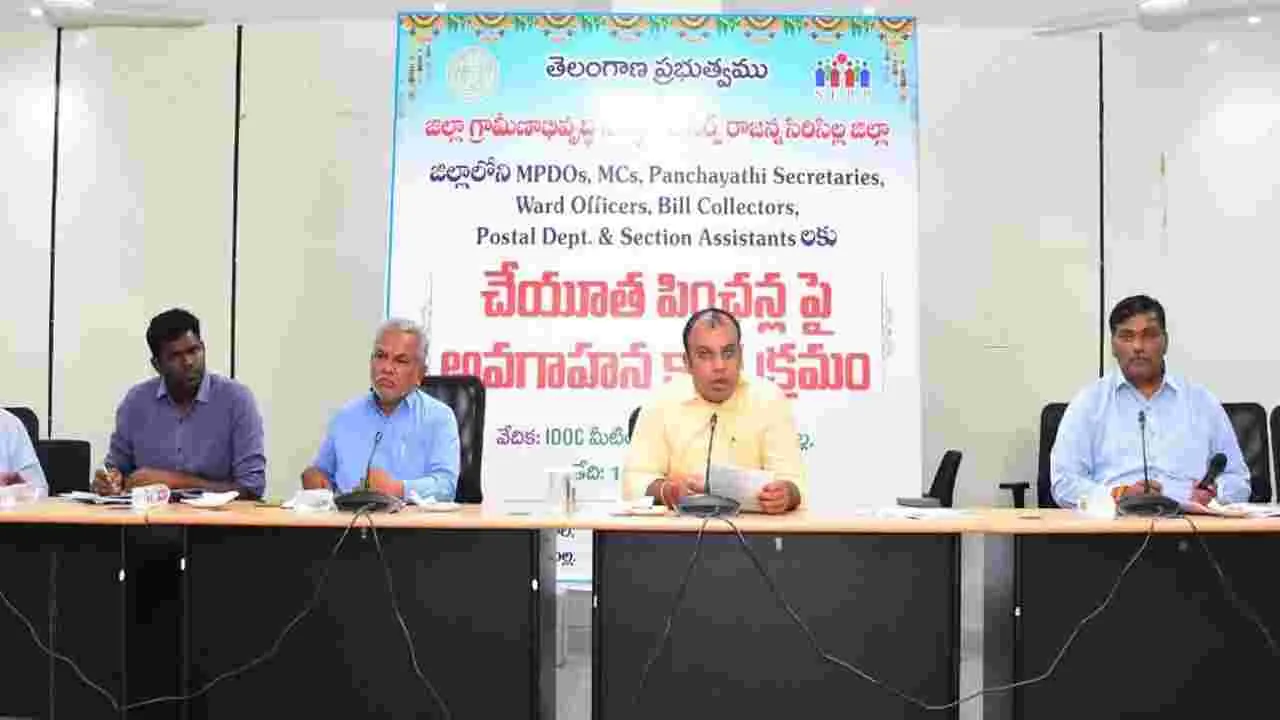 సిరిసిల్ల, సెప్టెంబరు 11 (ఆంధ్రజ్యోతి): అర్హులకు చేయూత ఫించన్ పథకం లబ్ధి చేకూరేలా చర్యలు తీసుకోవాలని సందీప్ కుమార్ ఝా అన్నారు. గురువారం కలెక్టరేట్లో చేయూత పిం ఛన్లపై అవగాహన కార్యక్రమం నిర్వహంచారు.ఈ సందర్భంగా కలెక్టర్ మాట్లాడుతూ చేయూత పథకం కింద వృద్ధులు, ది వ్యాంగులు, హెచ్ఐవీ వ్యాధిగ్రస్తులు, వితంతువులు, నేతన్నలు, గీతాకార్మికులు, బీడీకార్మికులు, టేకేదార్లు, ఒంటరి మహిళలు, డయాల సిస్, పైలేరియా రోగులకు ప్రభుత్వం పింఛన్ అందిస్తుందని అన్నారు. ప్రస్తుతం వృద్ధుల పింఛన్ తీసుకుంటున్న వారు మరణిస్తే వారి స్థా నంలో జీవిత భాగస్వామికి పెన్షన్ మంజూరు చేయడం, హెచ్ఐవీ, డయాలసిస్ పింఛన్ పోర్టల్ ఓపెన్ ఉందన్నారు. ప్రతి గ్రామంలో పం చాయతీ కార్యదర్శులు పెన్షన్కు సంబంధించి రెండు రిజిస్టర్లు మెయిం టెన్ చేయాలన్నారు. ఒక రిజిస్టర్లో మంజూరుచేసిన పింఛన్దారుల వివరాలు, మరో రిజిస్టర్లో అర్హత ఉన్న లబ్ధిదారుల వివరాలు రాయా లని, ప్రభుత్వం నుంచి ఆదేశాలు వస్తే నూతన పెన్షన్లు మంజూరు చేయాలని అన్నారు. వృద్ధాప్య పెన్షన్దారులు మరణిస్తే వెంటనే పెన్షన్ వారి జీవిత భాగస్వామికి వచ్చేలా చర్యలు తీసుకోవాలన్నారు. పంచా యతీ కార్యదర్శులు జనన, మరణ సర్టిఫికెట్ జారీ వివరాల రిజిస్టర్ పక్కాగా నిర్వహించాలని అన్నారు. జనన, మరణ సర్టిఫికెట్ ఆరు నెల లలోపు మాత్రమే స్థానికంగా పంచాయతీ కార్యదర్శులు జారీ చేయాల ని, తర్వాత రెవెన్యూ డివిజన్ అధికారికి మాత్రమే ఆ హక్కు ఉంటుం దని తెలిపారు. చేయూత పింఛన్దారులు మరణిస్తే వెంటనే చనిపో యినట్లు మార్కింగ్ చేయాలన్నారు. పెన్షన్ తీసుకుంటున్న వారు శాశ్వతంగా వలస పోతే క్షుణ్ణంగా విచారించిన తర్వాత పెన్షన్ తీసి వేయాలన్నారు. ప్రజా భవన్ దగ్గర జరిగే ప్రజావాణి కార్యక్రమంలో వచ్చే దరఖాస్తులను క్షేత్రస్థాయిలో పరిశీలించి రిపోర్టు 3 నుంచి 4 రోజుల్లో సమర్పించాలని తెలిపారు. నేషనల్ ఫ్యామిలీ బెనిఫిట్ స్కీం అర్హులైన పేదలకు అందాలని తెలిపారు. ఈ పథకం కింద 18 నుంచి 59 సంవ త్సరాల వయస్సుగల నిరుపేద కుటుంబంలో సంపాదించే వ్యక్తి మరణిస్తే ఒకేసారి రూ.20వేల సహాయం అందుతుందని, దారి ద్య్రరేఖకు దిగువన ఉన్న కుటుంబాలకు మాత్రమే ఈ పథకం వర్తి స్తుందన్నారు. ఆపద్బంధు, జేబీవై, ఏఏబీవై పథకం లబ్ధిదారులకు ఈ స్కిమ్ వర్తించదన్నారు. పథకం కింద వచ్చిన దరఖాస్తులను తహసీ ల్దార్ విచారించి ఆర్డీఓలకు రిపోర్ట్ అందించాలని, డీఆర్ఓ ద్వారా సెర్ప్ కు పంపాలన్నారు. ఆధార్ కార్డు, డెత్ సర్టిఫికెట్, బ్యాంక్ పాస్ పుస్తకం రేషన్కార్డు, కుల ధ్రువీకరణ పత్రాలతో పరిశీలించాలన్నారు. ఈ సమా వేశంలో డైరెక్టర్ సెర్ప్ గోపాల్, జిల్లా గ్రామీణ అభివృద్ధి అధికారి శేషా ద్రి, ఎంపీడీఓలు, మున్సిపల్ కమిషనర్లు తదితరులు 