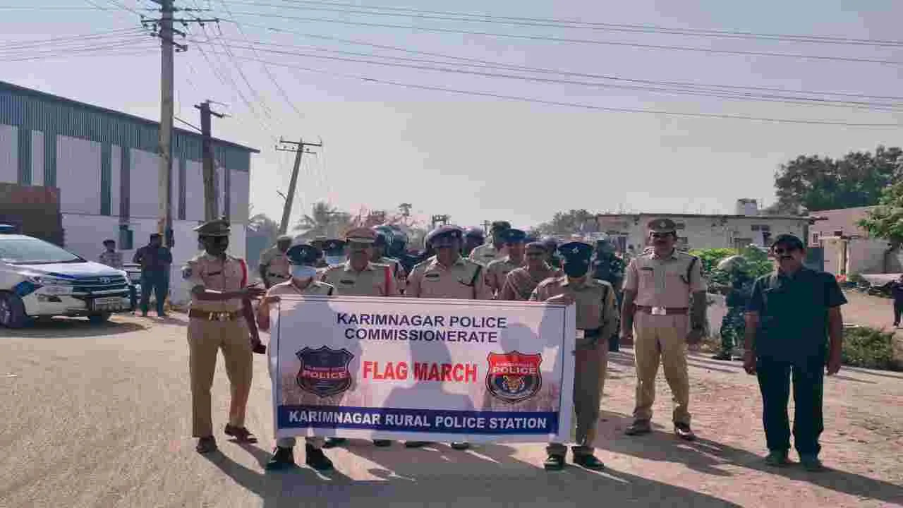 కరీంనగర్ క్రైం, డిసెంబరు 7 (ఆంధ్రజ్యోతి): ప్రజలు నిర్భయంగా ఓటు హక్కును వినియోగించుకోవాలని, ఎలాంట ప్రలోభాలకు గురికావద్దని, ఎన్నికల నియమావళిని పాటించాలని కరీంనగర్ రూరల్ ఏసీపీ విజయ్కుమార్, రూరల్ సీఐ ఏ నిరంజన్రెడ్డిలు ప్రజలను కోరారు. కరీంనగర్ రూరల్ మండలంలోని మొగ్దుంపూర్, చెర్లబూత్కూర్, చామనపల్లి, నగునూర్ గ్రామాల్లో కరీంనగర్ రూరల్ పోలీసులు ఆదివారం ‘కవాతు’ నిర్వహించారు. కూడళ్లలో ప్రజలను సమీకరించి ఎన్నికల నియమావళిపై అవగాహన కల్పించారు. ఈ సందర్భంగా గ్రామాలలో ప్రజలను ఉద్దేశించి ఏసీపీ, సీఐ మాట్లాడుతూ... గ్రామ పంచాయతీ ఎన్నికల్లో గ్రామాల్లోని ప్రజలు నిర్భయంగా తమ ఓటు హక్కును వినియోగించుకోవాలన్నారు. ఎన్నికల కమిషన్ నిబంధనలు ప్రతి ఒక్కరూ పాటించాలన్నారు. ఎలాంటి చట్టవ్యతిరేక కార్యకలాపాలకు పాల్పడవద్దని సూచించారు. ఎన్నికలకు బందోబస్తుకు వచ్చిన పోలిసులకు గ్రామాల ప్రజలు సహకరించాలన్నారు. ఎన్నికల్లో గెలుపు, ఓటములు సహజమని, ఎన్నికల తర్వాత ప్రజలందరూ కలిసి, మెలిసి ఉండాలని కోరారు. ఎన్నికల నిబంధనలు పాటించక, చట్టవ్యతిరేక చర్యలకు పాల్పడితే కఠినంగా వ్యవహరిస్తామని హెచ్చరించారు. కార్యక్రమంలో ఎస్ఐలు నరేష్, లక్ష్మారెడ్డి, సిబ్బంది పాల్గొన్నారు.