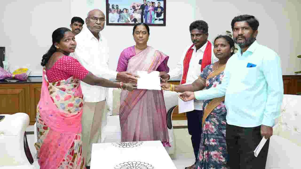 సిరిసిల్ల టౌన్, జూలై 26 (ఆంధ్రజ్యోతి) : రాజన్న సిరిసిల్ల జిల్లా వేములవాడ శ్రీ రాజరాజేశ్వర స్వామి దేవస్థానంలో కాంట్రాక్టు, ఔట్సోర్సింగ్లో పనిచేస్తున్న పారిశుధ్య కార్మికులను ప్రభుత్వ ఉద్యోగులుగా గుర్తిం చాలని సీపీఐ జాతీయ కార్యవర్గ సభ్యుడు చాడ వెంకటరెడ్డి అన్నారు. శనివారం రాజన్న సిరిసిల్ల జిల్లా ఏఐటీయూసీ ఆధ్వర్యంలో చాడ వెంకటరెడ్డి హైద రా బాద్లో తెలంగాణ రాష్ట్ర దేవాదాయ, ధర్మదాయ శాఖ మంత్రి కొండా సురేఖను కలిశారు. దక్షణ కాశి గా పేరుగాంచిన వేములవాడ శ్రీరాజరాజేశ్వర స్వామి దేవస్థానంలో కొన్ని సంవత్సరాలుగా కాంట్రాక్టు, ఔట్ సోర్సింగ్ పద్ధతిలో దాదాపు 200 మంది పారిశుధ్య కార్మికులు విధులు నిర్వహిస్తున్న వారిని ప్రభుత్వ ఉద్యోగులుగా గుర్తించాలని మంత్రి కొండా సురేఖకు చాడ వెంకటరెడ్డి, రాజన్న సిరిసిల్ల జిల్లా ఏఐటీయూసీ నాయకులు వినతిపత్రం అందించారు. ఈ సందర్భం గా చాడ వెంకటరెడ్డి మాట్లాడుతూ దేవస్థానంలో పనిచేస్తున్న పారి శుధ్య కార్మికులకు కాంట్రాక్టర్ ద్వారా సంగం వేతనం మాత్రమే వస్తుందని ఆ వేతనాలు కూడా గత మూడు నెలలుగా ఇవ్వడం లేదన్నారు. కాంట్రాక్టు పద్ధతిలో కాకుండా దేవాదాయ ధర్మాదాయ శాఖ ఉద్యోగులుగా గుర్తించి కార్మికులకు నెలకు రూ.26వేలు ఇవ్వా లని, ఐడీ కార్డులు, ఈఎస్ఐ, పీఎఫ్, హెల్త్కార్డులు, ప్రమాధ బీమా సౌకర్యం రూ.25లక్షలు కల్పించాలని మంత్రిని కోరారు. కార్మికులకు రోజుకు ఎనిమిద గంటల పని విధానాన్ని అమలు చేస్తూ, అదనపు పని గంటలకు అదనపు వేతనం చెల్లించాలని, రిటైర్మెంట్ తరువాత పెన్షన్ సౌకర్యల కల్పించాలని కోరారు. వేములవాడ దేవాలయానికి నిత్యం పెరుగుతున్న భక్తుల రద్దీకి అనుగుణంగా అదనపు సిబ్బంది ని నియమించాలని కోరారు. మంత్రికి వినతిపత్రం అందించిన వారిలో ఏఐటీయూసీ జిల్లా అధ్యక్షుడు అజ్జ వేణు, ప్రధాన కార్యద ర్శి కడారి రాములు, కార్మికులు వి కీతవ్వ, రేణుక ఉన్నారు.