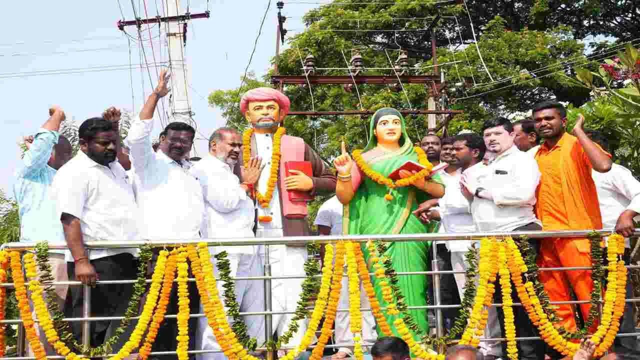 చందుర్తి,ఏప్రిల్ 11 (ఆంధ్రజ్యోతి) మహనీయుల ఆశయ సాధనకు కృషి చేస్తు న్నామని ప్రభుత్వ విప్ ఆది శ్రీనివాస్ పేర్కొన్నారు. చందుర్తి మండల కేంద్రంలో జ్యోతిరావు పులే జయంతి వేడుకల్లో పాల్గొని ప్రభుత్వ విప్ ఆది శ్రీనివాస్ విగ్రహా నికి పూలమాల వేసి, ఘనంగా నివాళులు అర్పించారు.ఈ సందర్బంగా అయన మాట్లాడుతూ మహనీయుల ఆశయ సాధనకు పాటుపడదామన్నారు. నేటి యువ త మహనీయుల జీవితాలను తెలుసుకొని నిత్య జీవితంలో ముందుకు సాగలా న్నారు. ప్రజా ప్రభుత్వంలో అన్ని వర్గాల సంక్షేమమే ధ్యేయంగా ముందుకు పోతు న్నమన్నారు. సావిత్రి బాపులె, జ్యోతిరావు పూలే విద్య ఆవశ్యకతను గుర్తించి ఆ రోజుల్లోనే ఆనేక మందికి విద్య దానం చేశారని తెలిపారు. వారు సమాజంలో అంటరాని తనాన్ని రూపుమాపడానికి ఎంతో కృషి చేశారన్నారు. ఈ కార్యక్రమంలో మండల కాంగ్రెస్ పార్టీ అధ్యక్షులు చింతపంటి రామస్వామి, రుద్రంగి మార్కెట్ కమిటీ వైస్ చైర్మన్ బొజ్జ మల్లేశం, నాయకులు గొట్టే ప్రభాకర్, పులి సత్తయ్య, ఎన్గంటి శంకర్ దూది శ్రీనివాసరెడ్డి సొంతపూరి బాలకృష్ణ,మధు, శంకర్, ప్రసాద్, దేవస్వామి, దేవరాజు తదితరులు పాల్గొన్నారు.